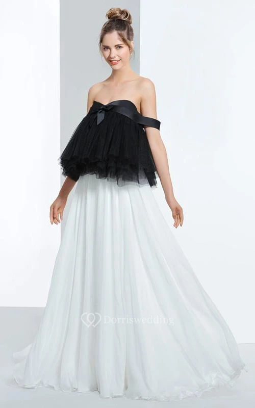 A-Line Sweetheart Pleats Bowknot Floor-Length Prom Dress
