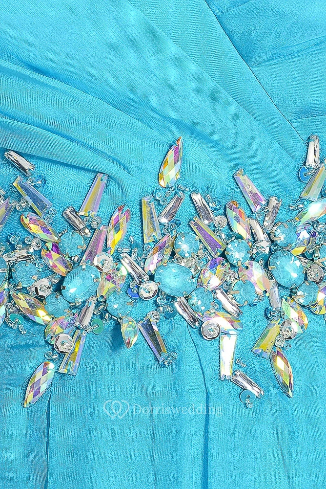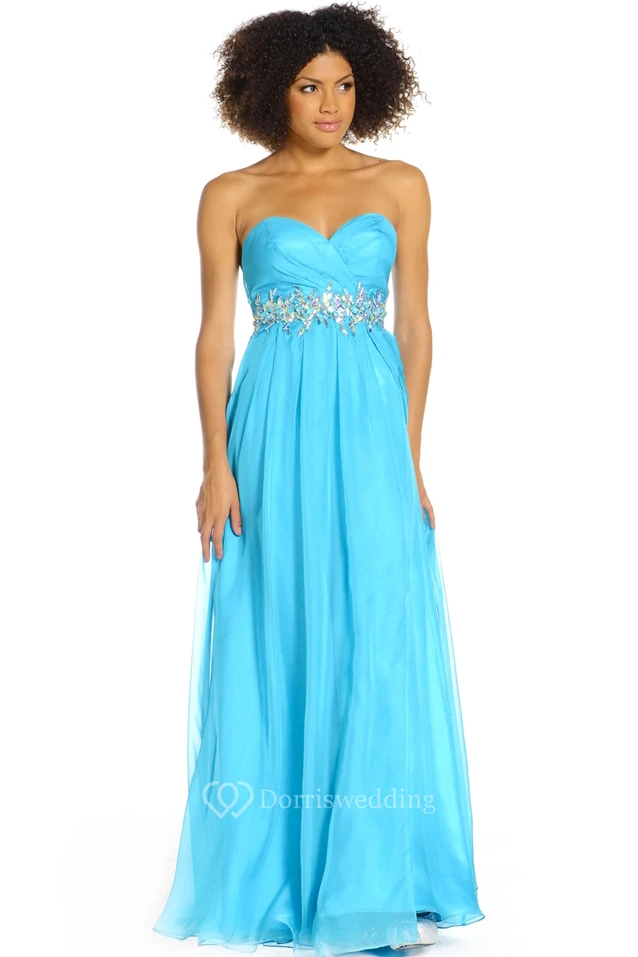 A-Line Sweetheart Ruched Sleeveless Floor-Length Prom Dress With Waist Jewellery