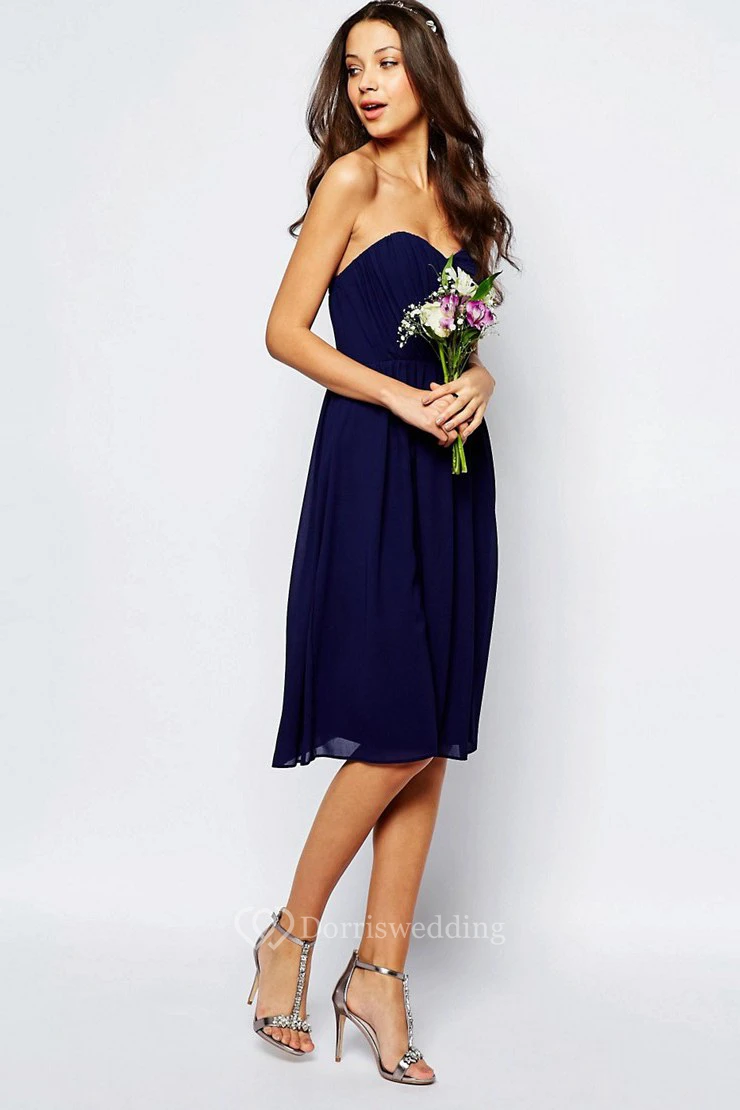 A-Line Sweetheart Ruched Sleeveless Knee-Length Chiffon Bridesmaid Dress