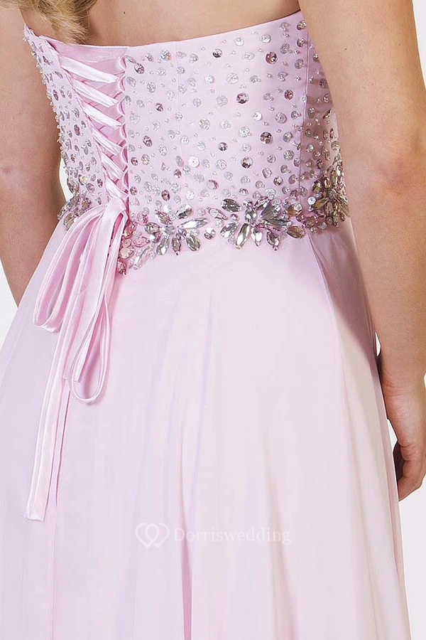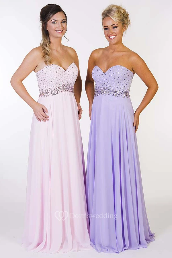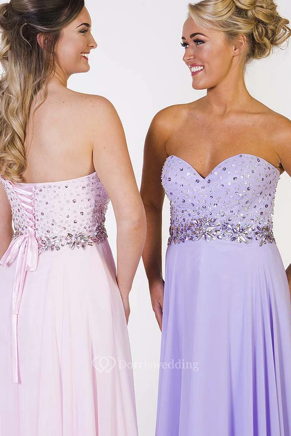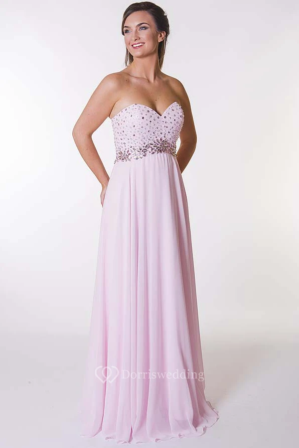 A-Line Sweetheart Sleeveless Beaded Long Chiffon Prom Dress With Pleats