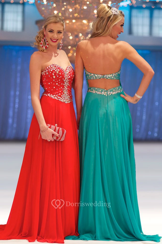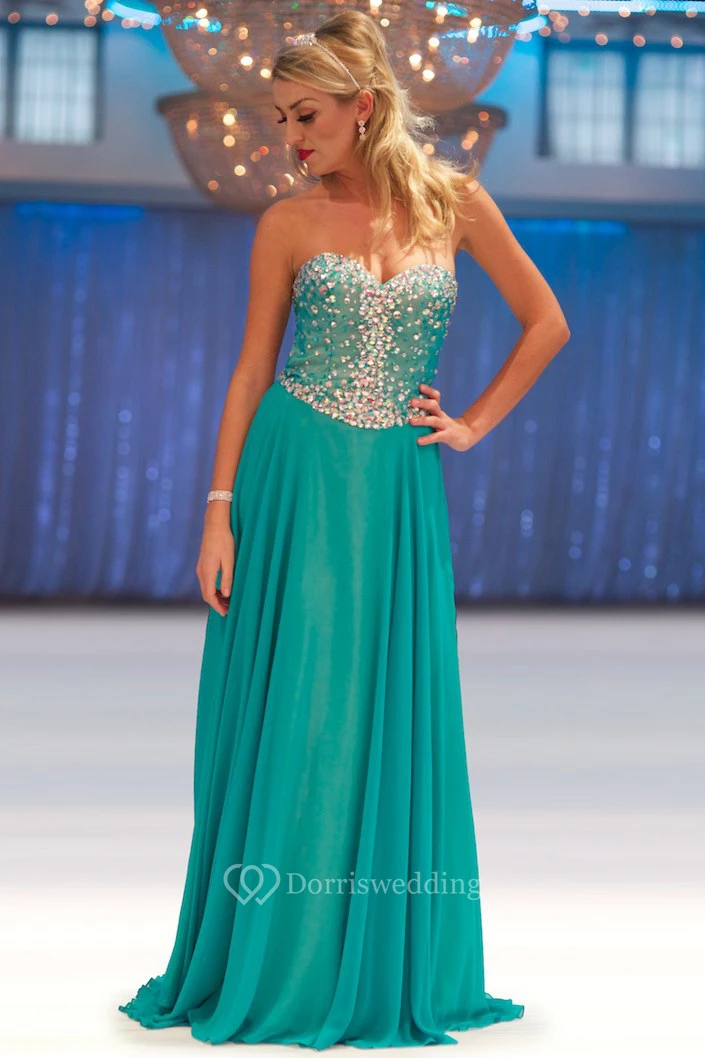 A-Line Sweetheart Sleeveless Beaded Maxi Chiffon Prom Dress With Pleats