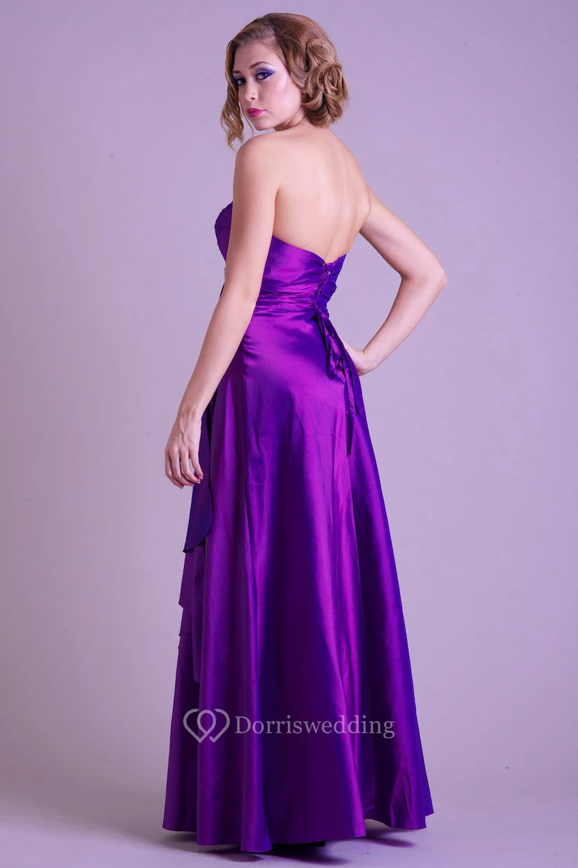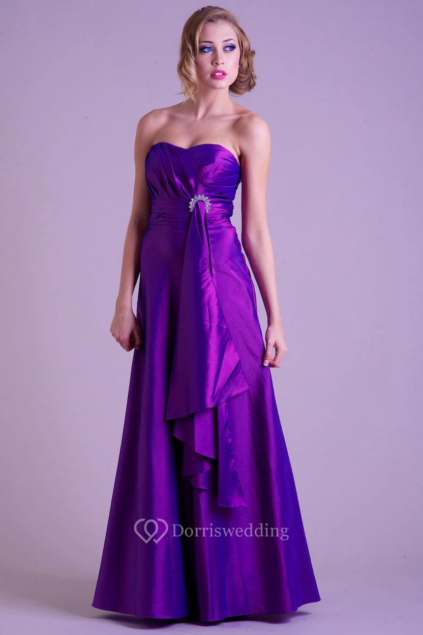 A-Line Sweetheart Sleeveless Broach Floor-Length Satin Prom Dress With Draping