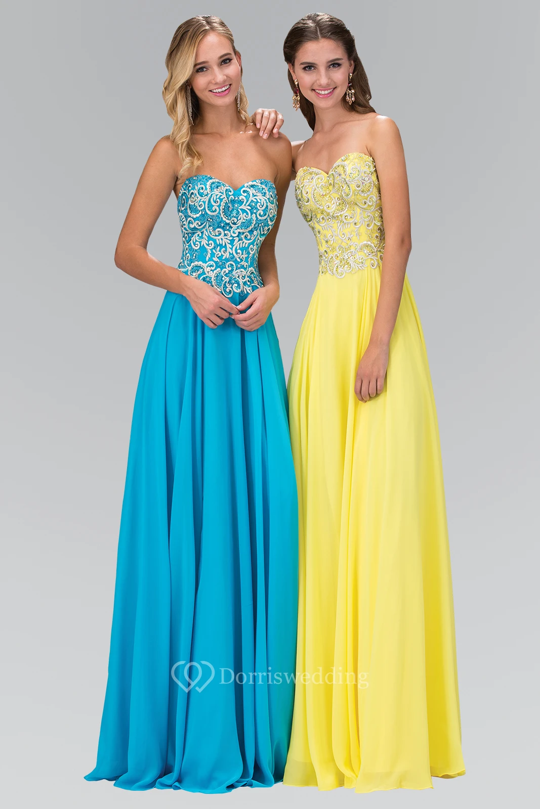 A-Line Sweetheart Sleeveless Chiffon Zipper Dress With Embroidery And Pleats
