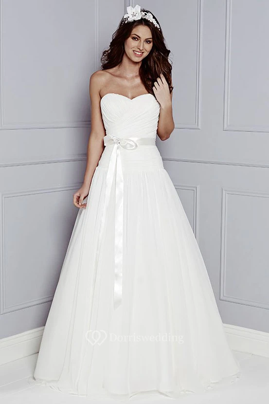 A-Line Sweetheart Sleeveless Criss-Cross Floor-Length Tulle&Satin Wedding Dress With Bow