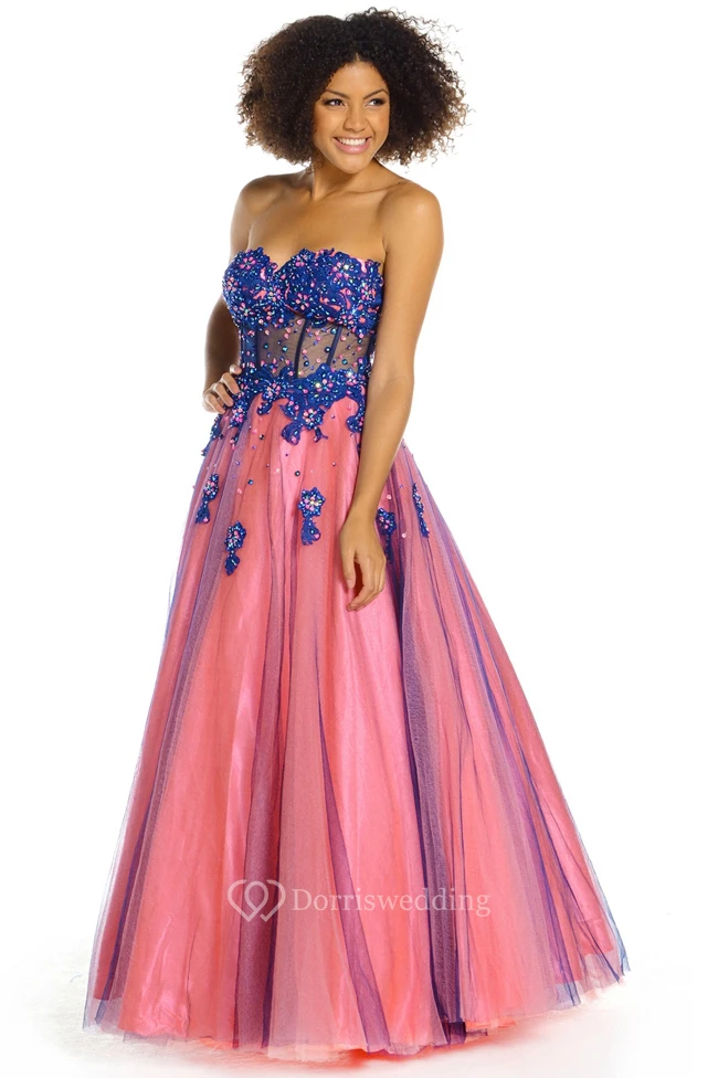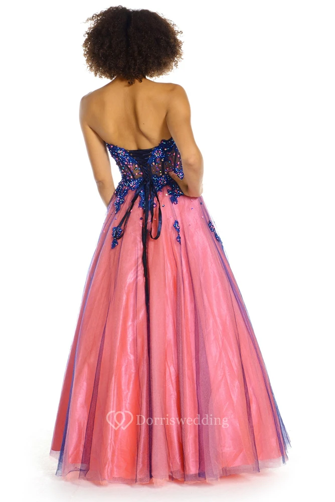 A-Line Sweetheart Sleeveless Crystal Floor-Length Satin Prom Dress With Corset Back