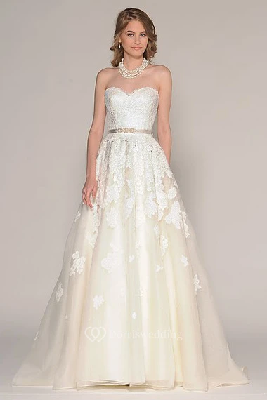 A-Line Sweetheart Sleeveless Floor-Length Appliqued Lace Wedding Dress
