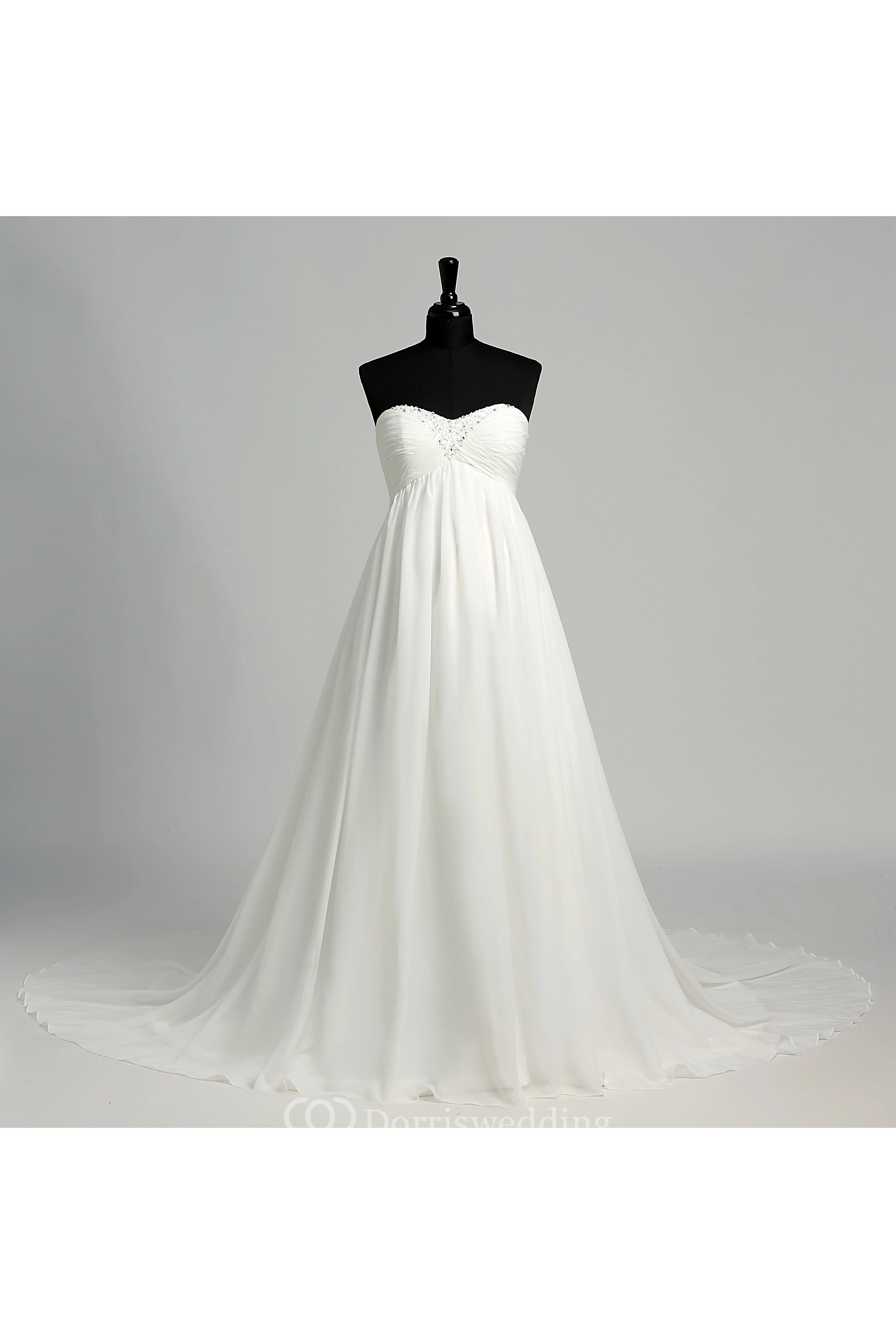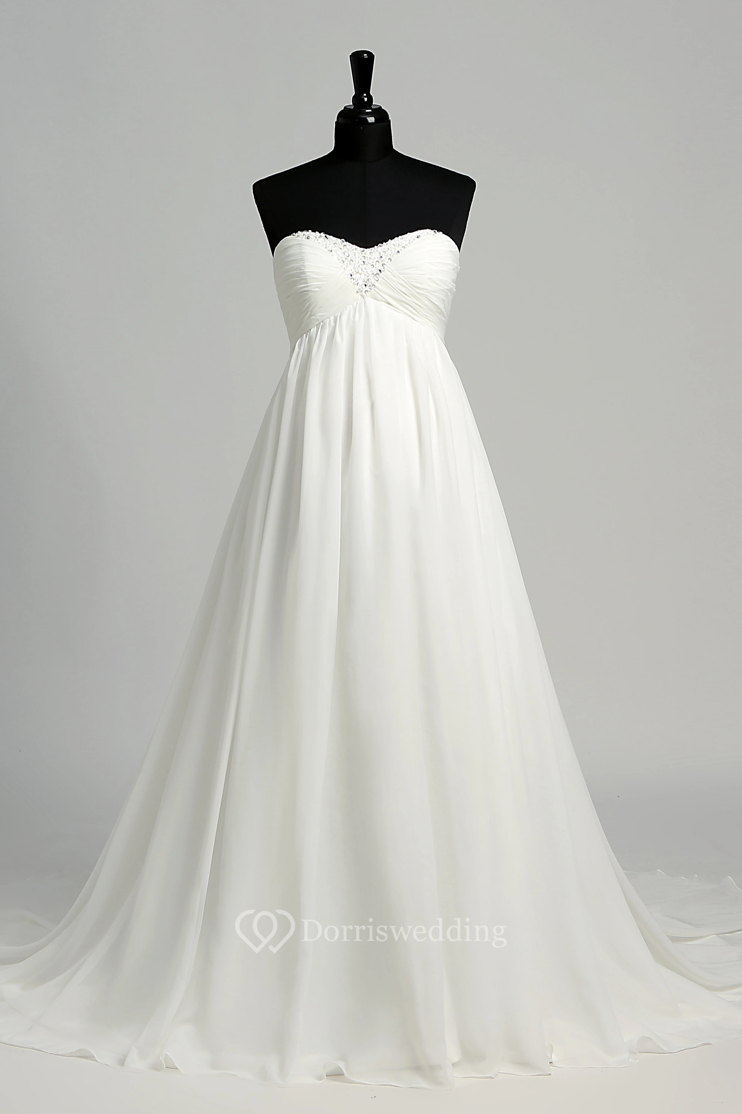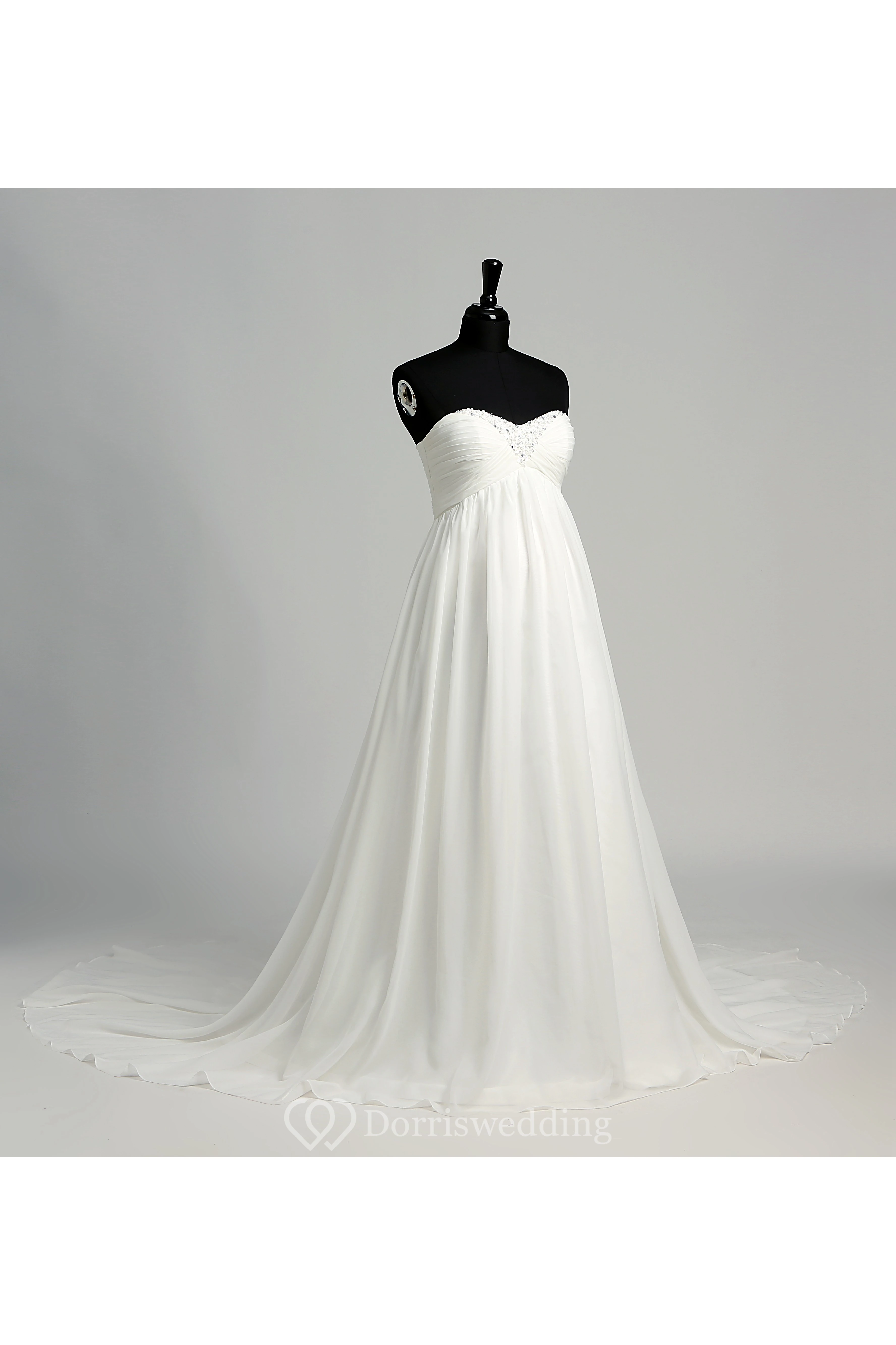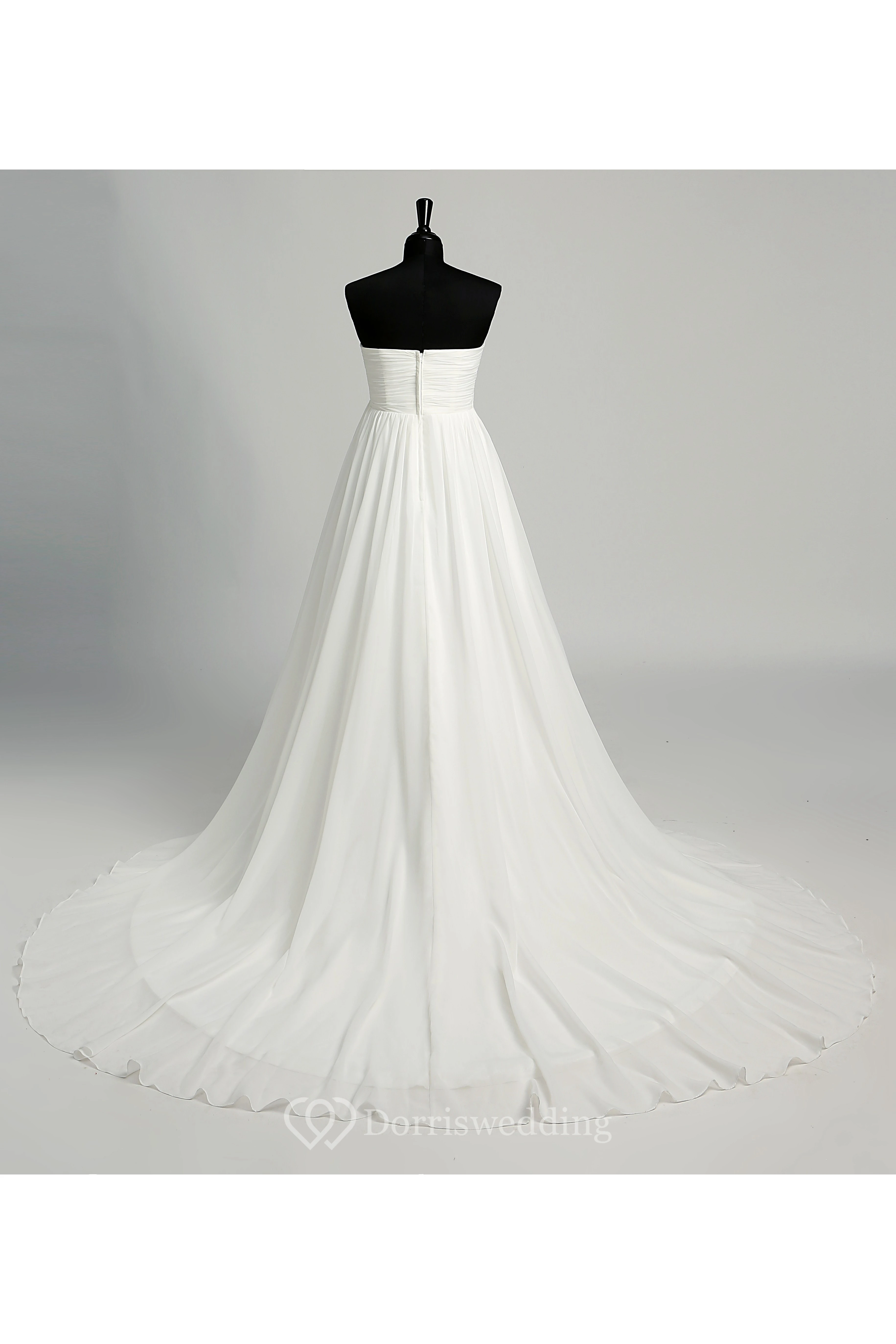 A-line Sweetheart Sleeveless Floor-length Chiffon Wedding Dress with Court Train