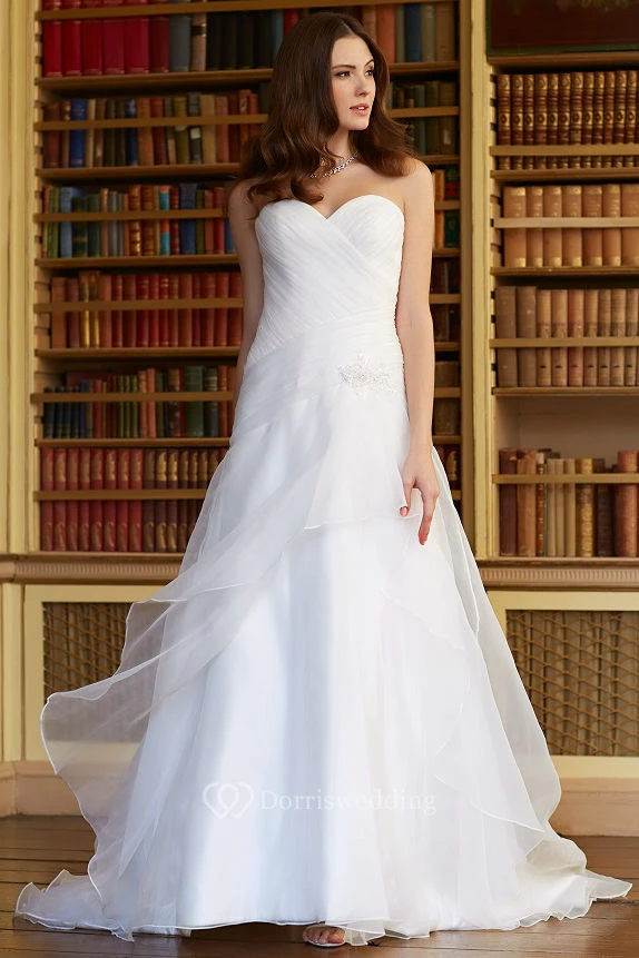 A-Line Sweetheart Sleeveless Floor-Length Criss-Cross Organza Wedding Dress With Draping