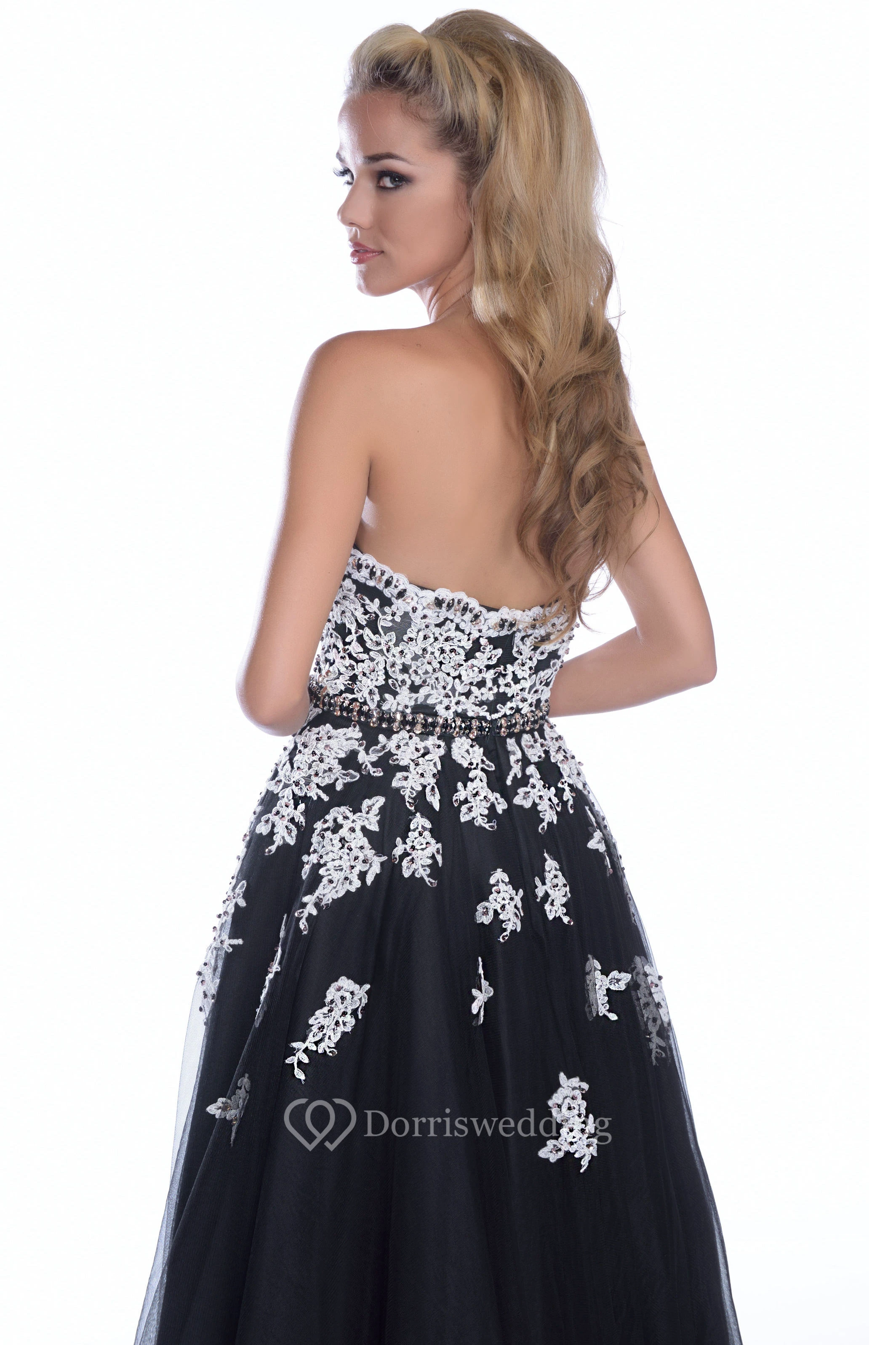 A-Line Sweetheart Sleeveless Tulle Prom Dress With Jeweled Appliques And Waistband