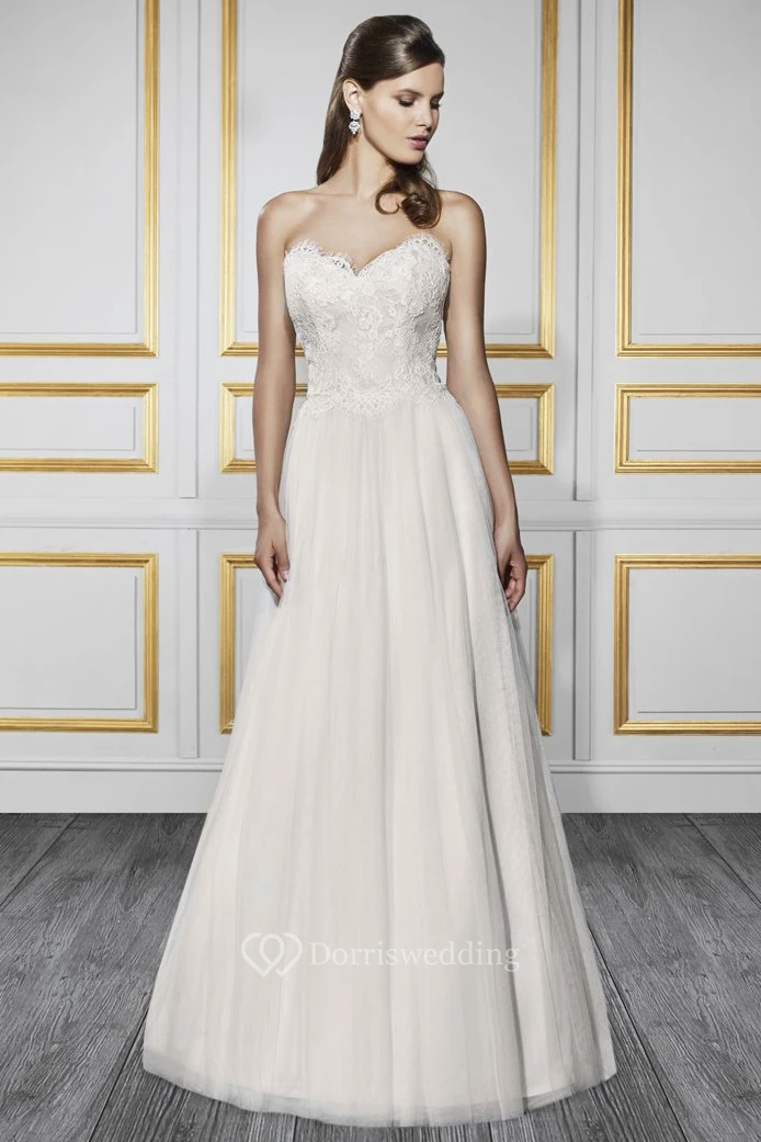 A-Line Sweetheart Tulle&Lace Wedding Dress With Zipper