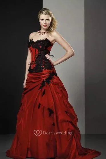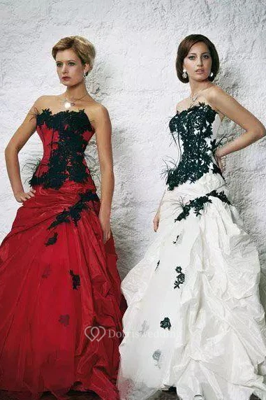 A-Line Taffeta Sweetheart Sleeveless Sweep Train Wedding Dress with Appliques and Cascading Ruffles