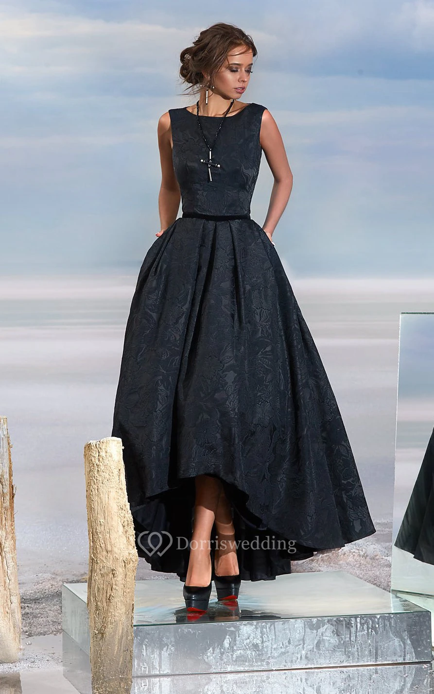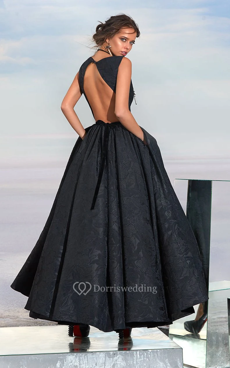 A-line Tea-length High Neck Sleeveless Lace Keyhole Dress