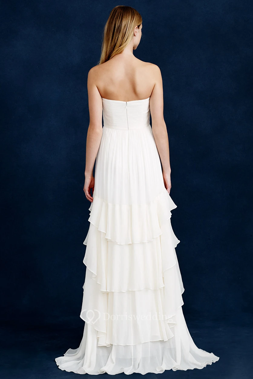 A-Line Tiered Sleeveless Strapless Long Chiffon Wedding Dress With Draping