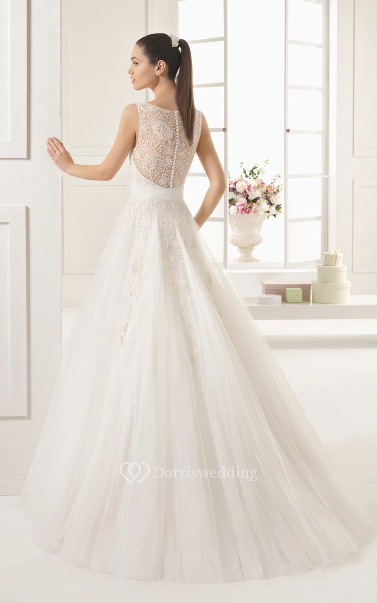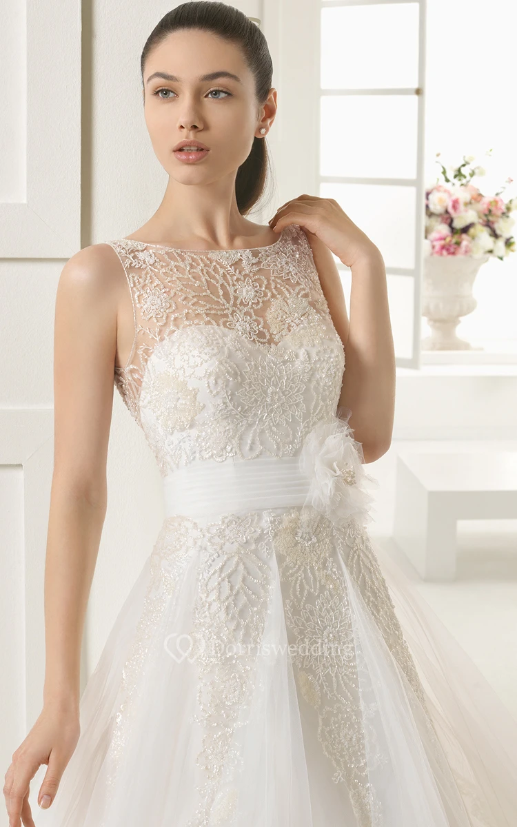 A-Line Tulle Dress With Flower Decorated Belt