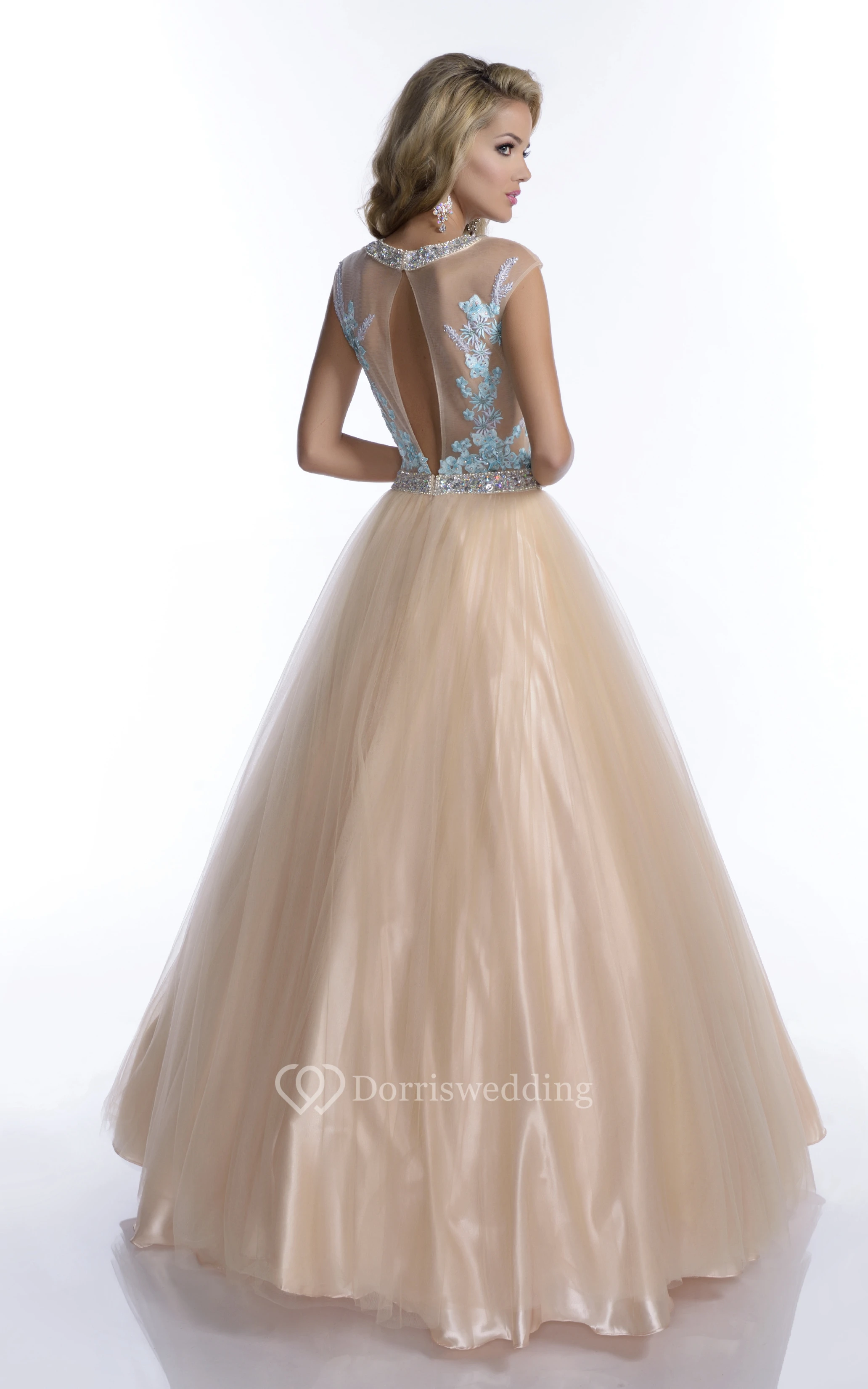 A-Line Tulle Sleeveless Beaded Neck Prom Dress Featuring Lace Bodice And Keyhole Back