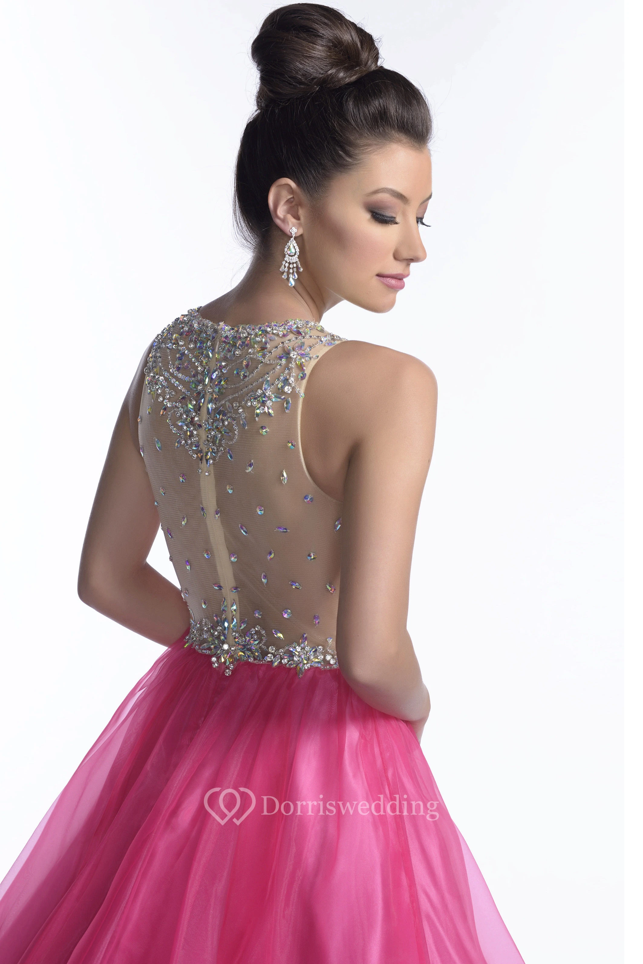 A-Line Tulle Sleeveless Prom Dress With Lace Bodice And Shining Rhinestones