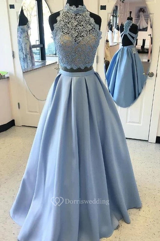 A-Line Two Piece Satin Lace Sweetheart Sleeveless Straps Dress