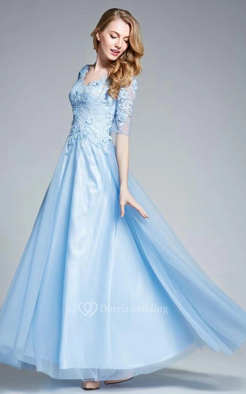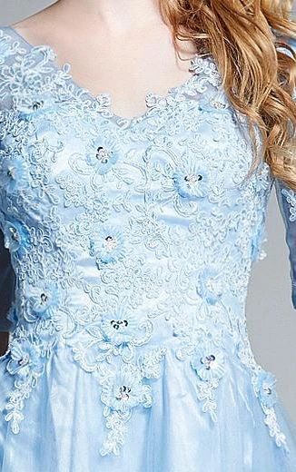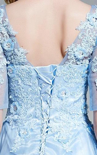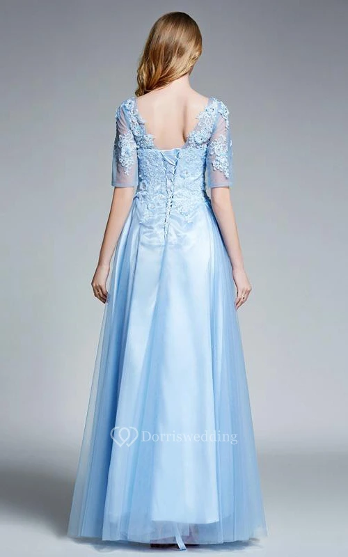 A-Line V-Neck Half Sleeves Appliques Beading Prom Dress