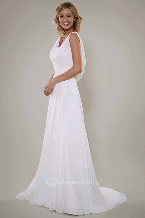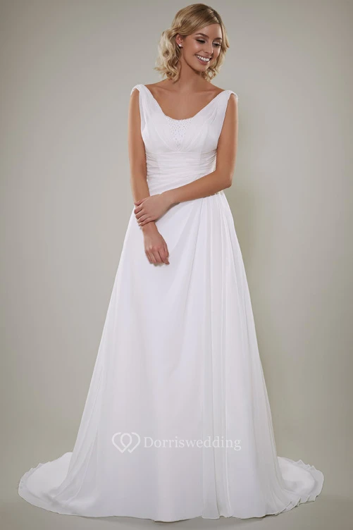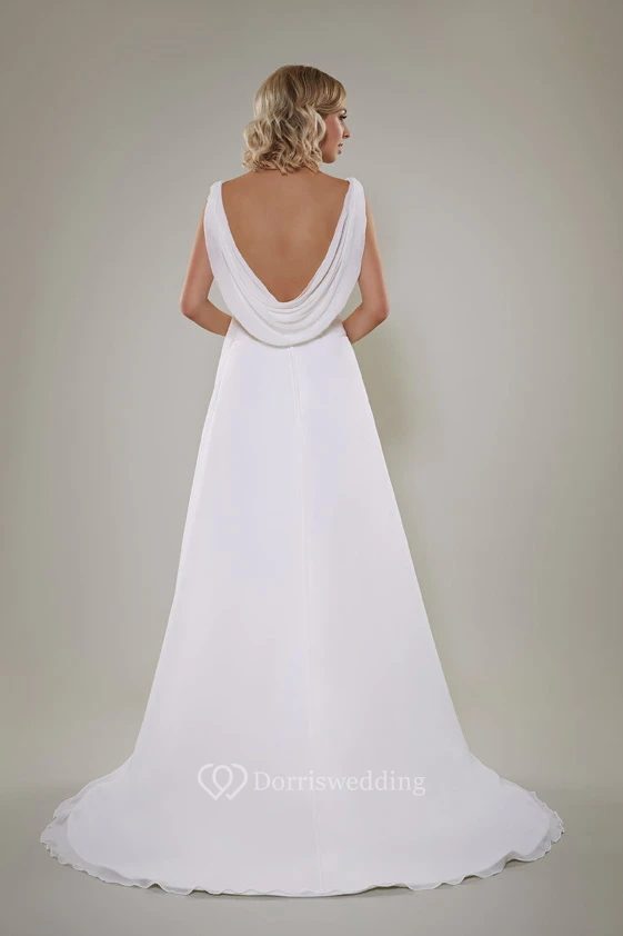 A-Line V-Neck Maxi Sleeveless Satin Wedding Dress With Deep-V Back And Sweep Train