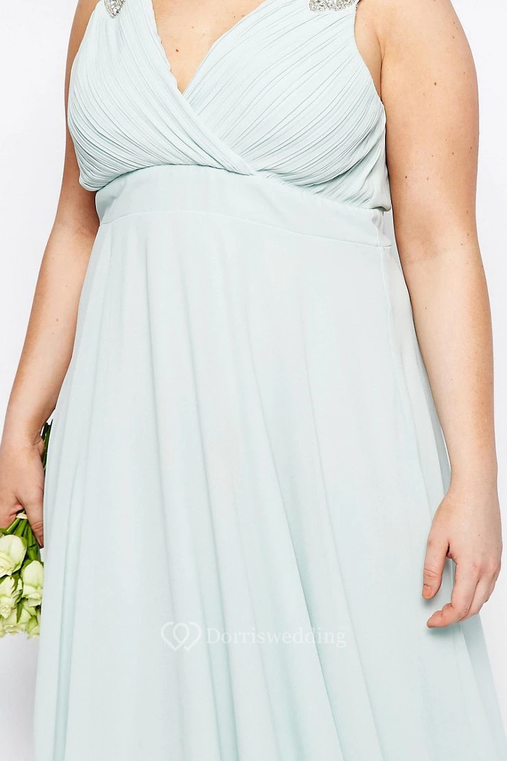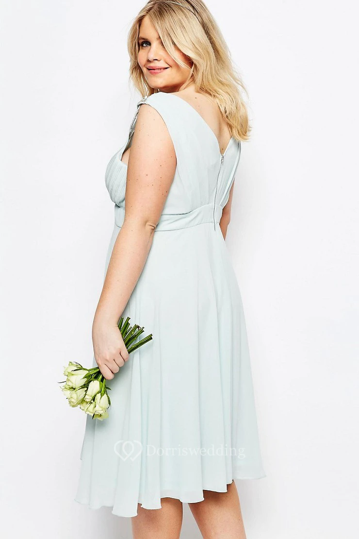 A-Line V-Neck Ruched Sleeveless Knee-Length Chiffon Bridesmaid Dress With Beading And Pleats