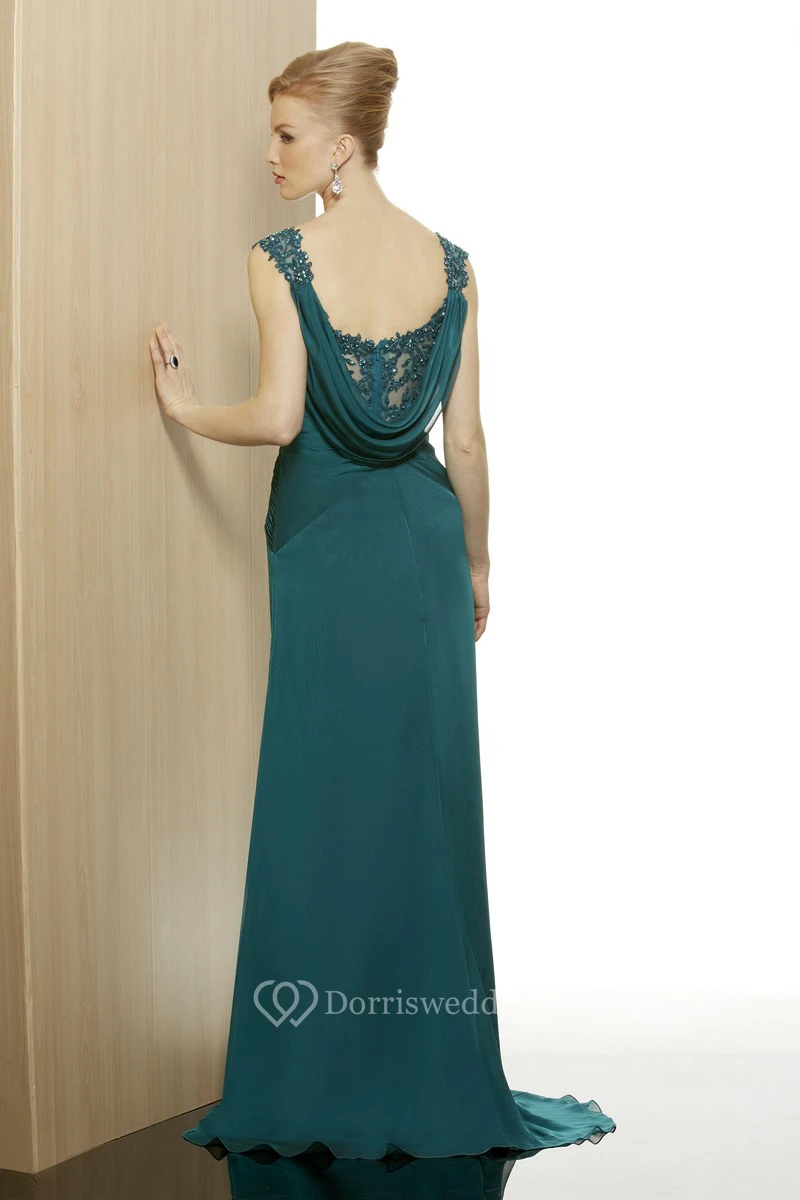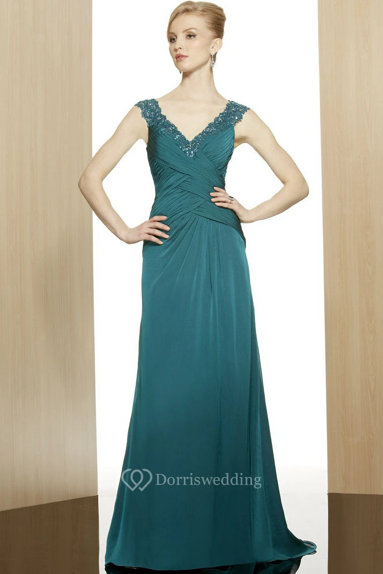 A-Line V-Neck Sequined Sleeveless Long Chiffon Formal Dress With Low-V Back And Ruching