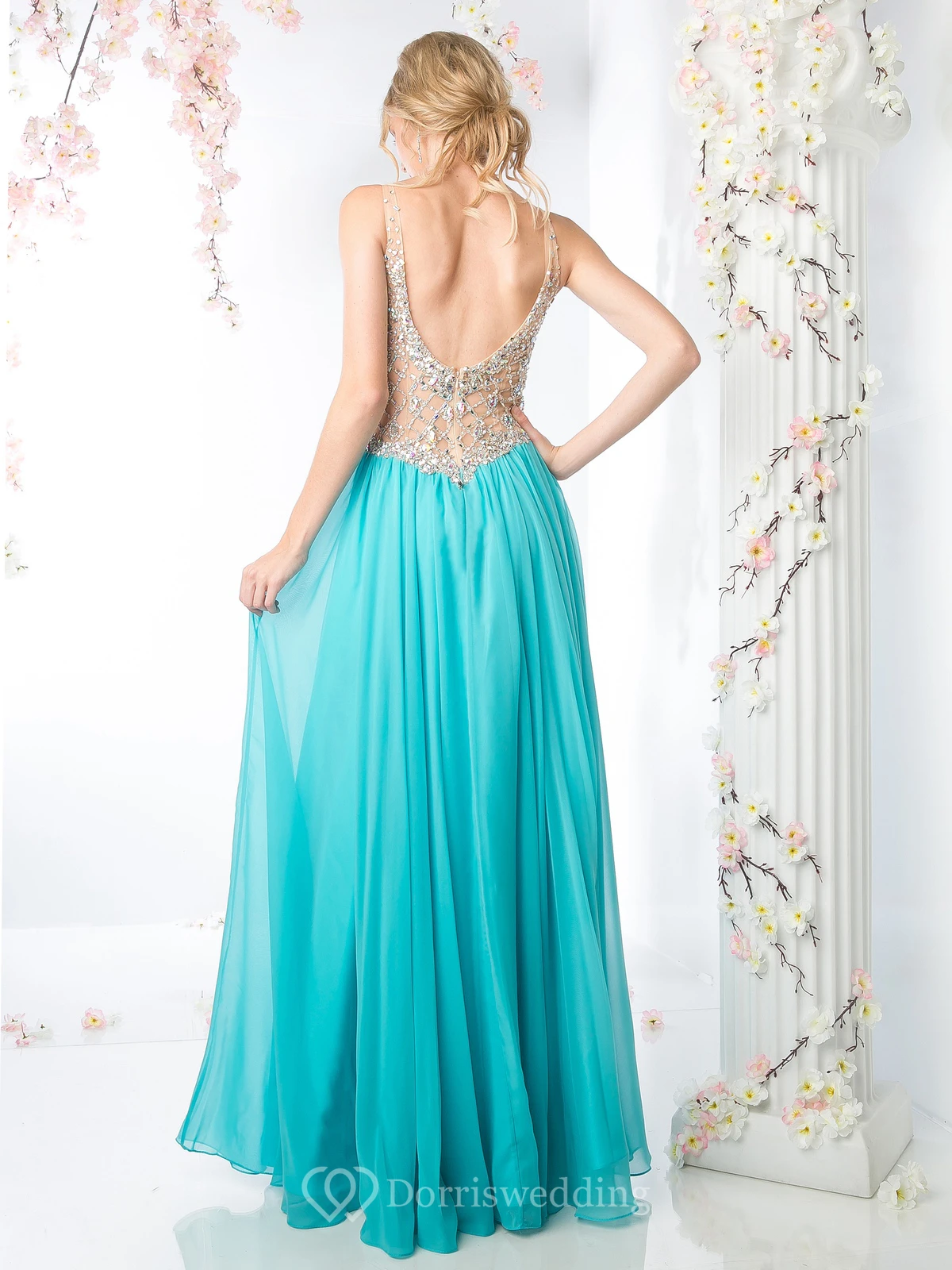 A-Line V-Neck Sleeveless Chiffon Deep-V Back Dress With Beading And Pleats