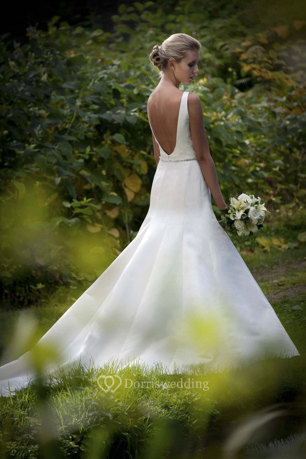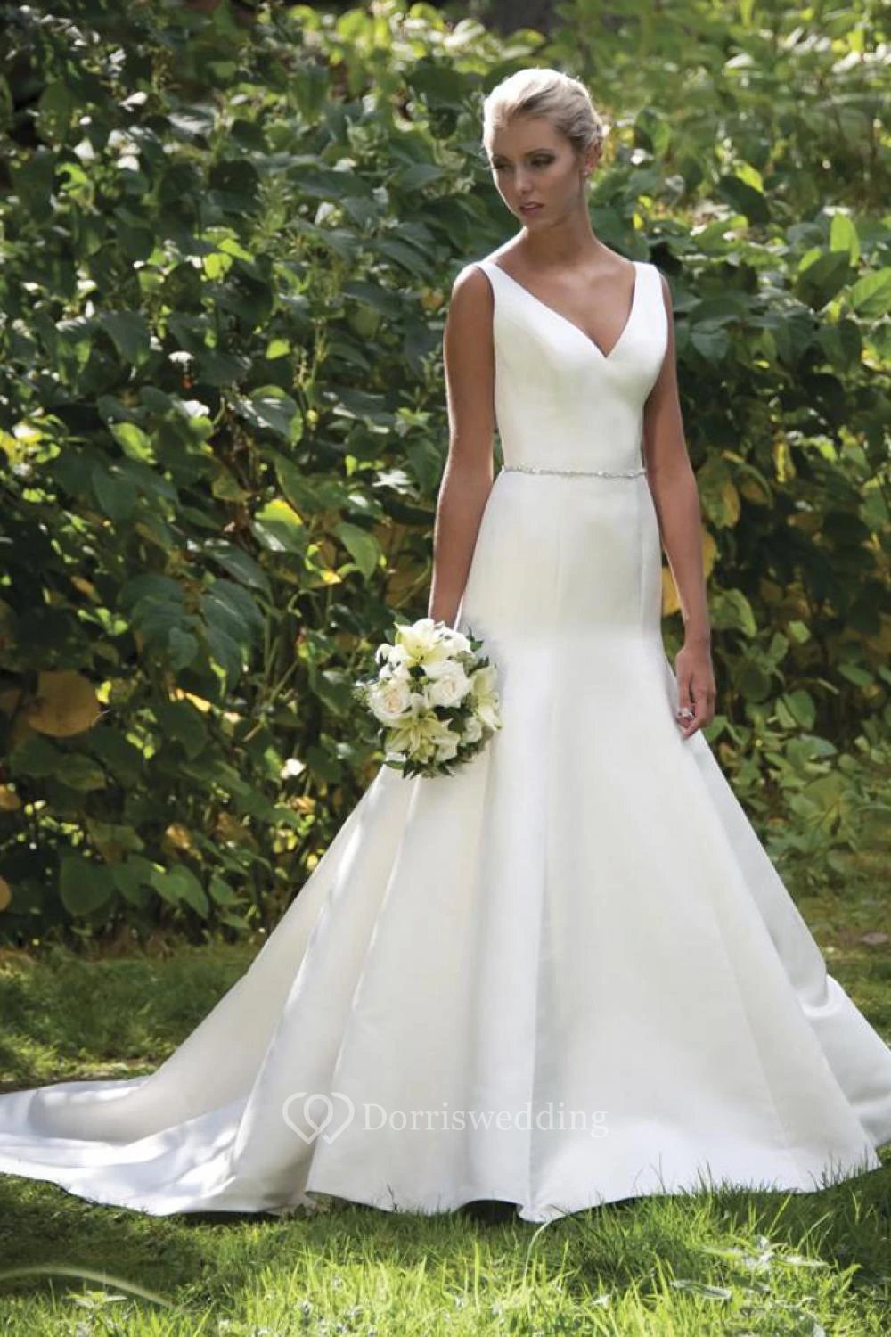 A-Line V-Neck Sleeveless Satin Wedding Dress With Waist Jewellery And Deep-V Back