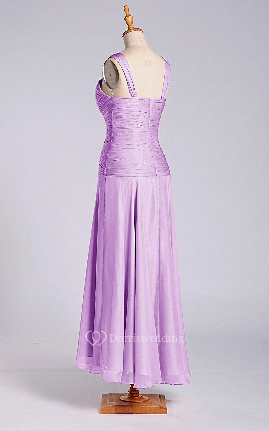 A-line V-neck Tea-length Dropped Chiffon Dress