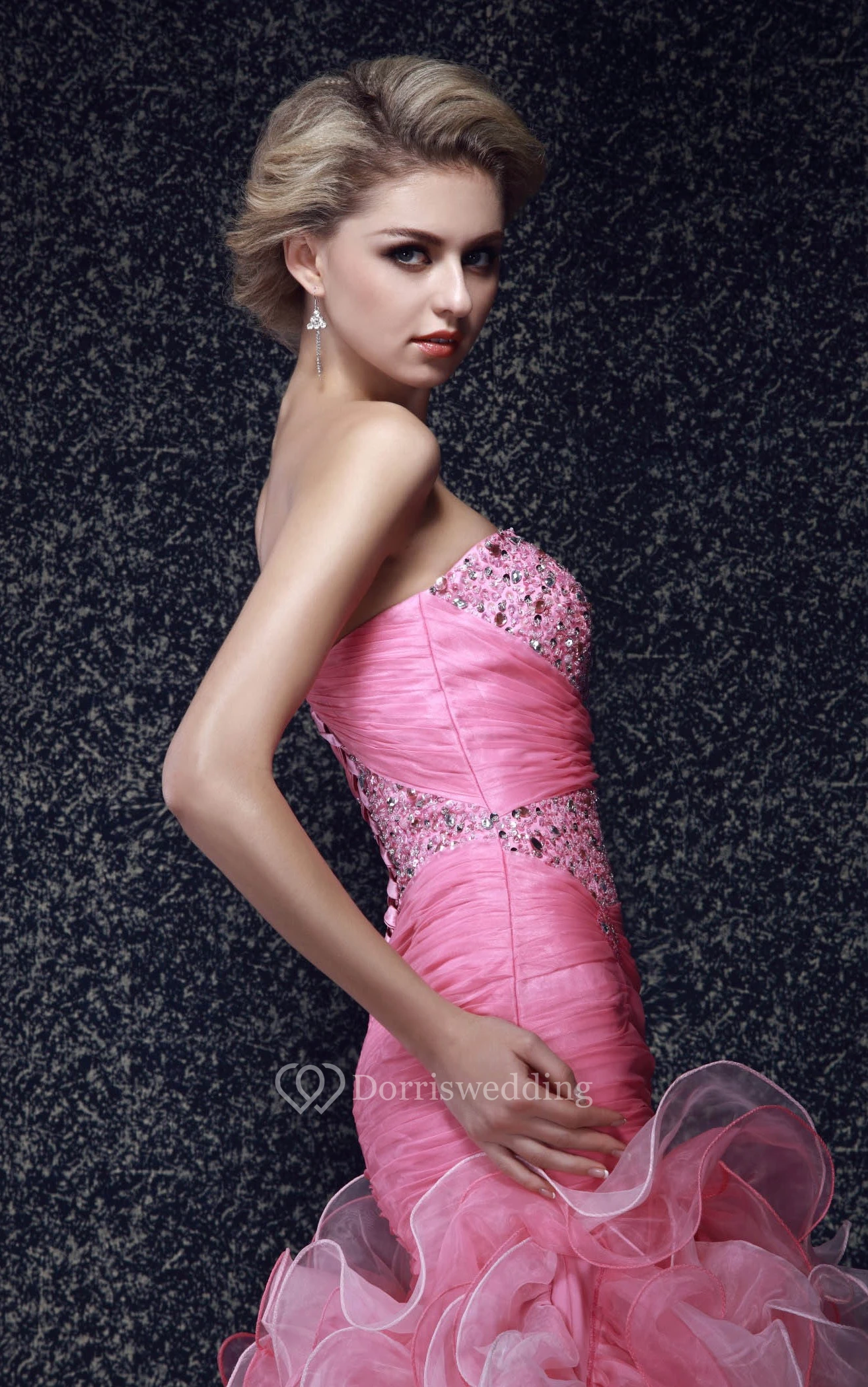 Adorable Strapless Front-Split Ruffled Dress With Gemmed Bodice