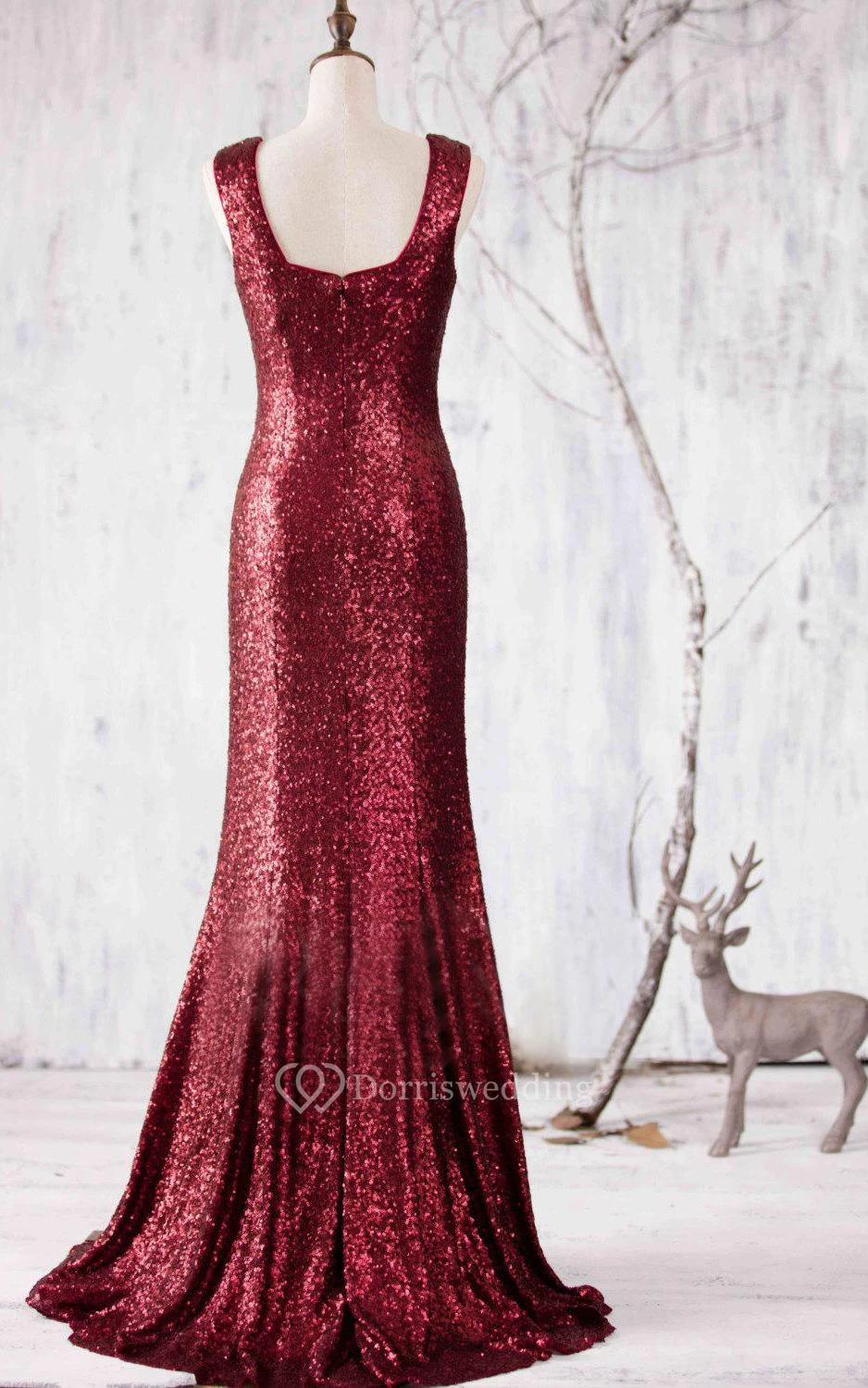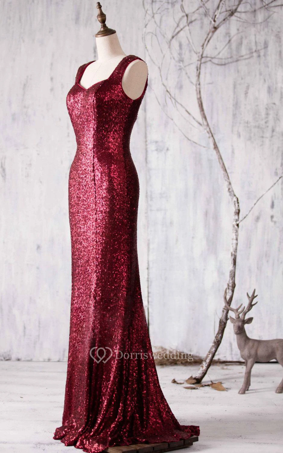 Allover Sequined Sheath Floor Length Dress With Square Back