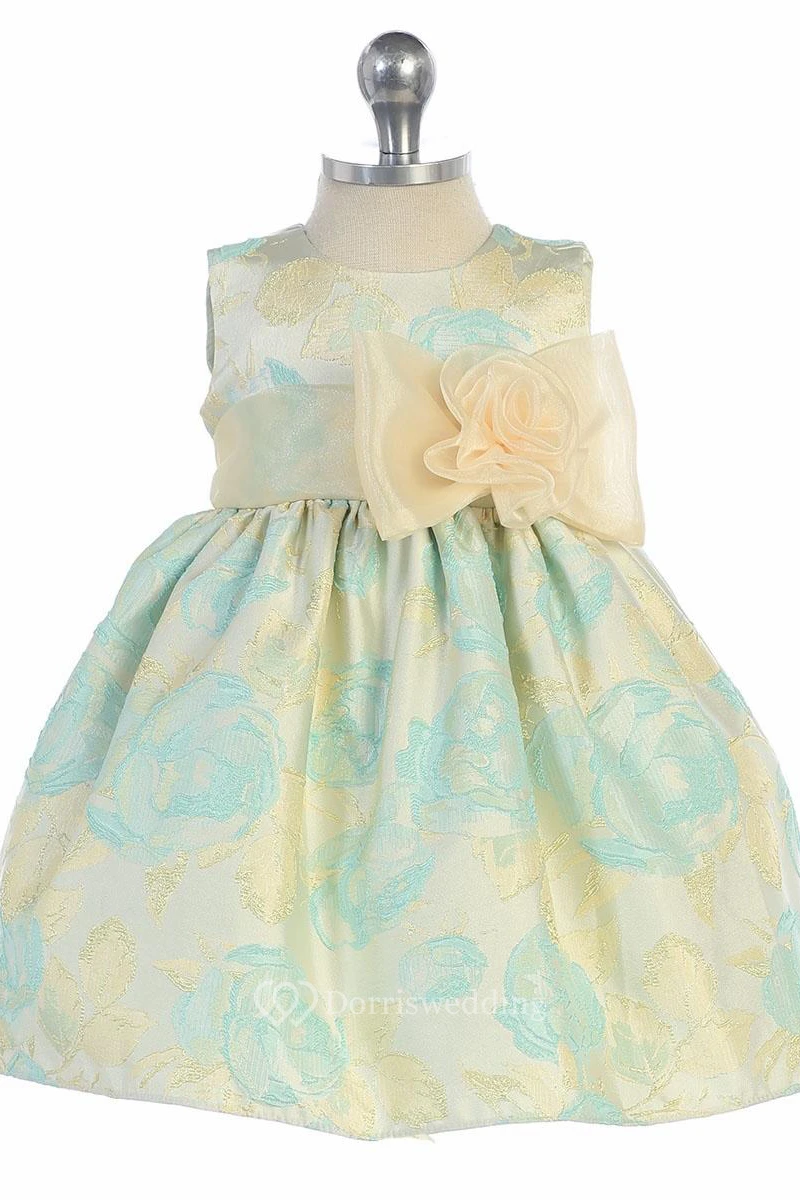 Tea-Length Floral Bowed Floral Organza&Satin Flower Girl Dress With Ribbon