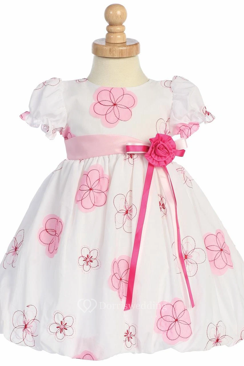 Tea-Length Bowed Embroideried Taffeta Flower Girl Dress