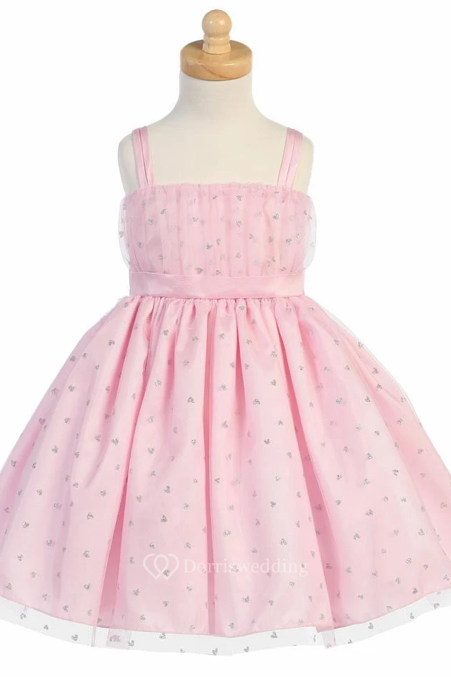 Spaghetti Tea-Length Tiered Tulle Flower Girl Dress