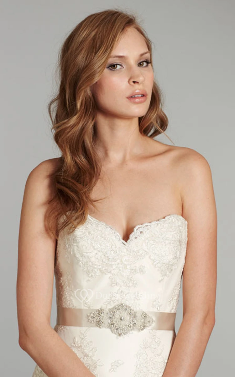 Alluring Strapless Embroidered Lace Dress With Crystal Beaded Belt
