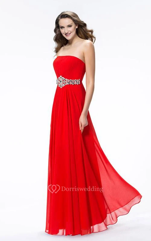 Amazing A-Line Strapless Crystal Zipper-up Floor-Length Prom Dress