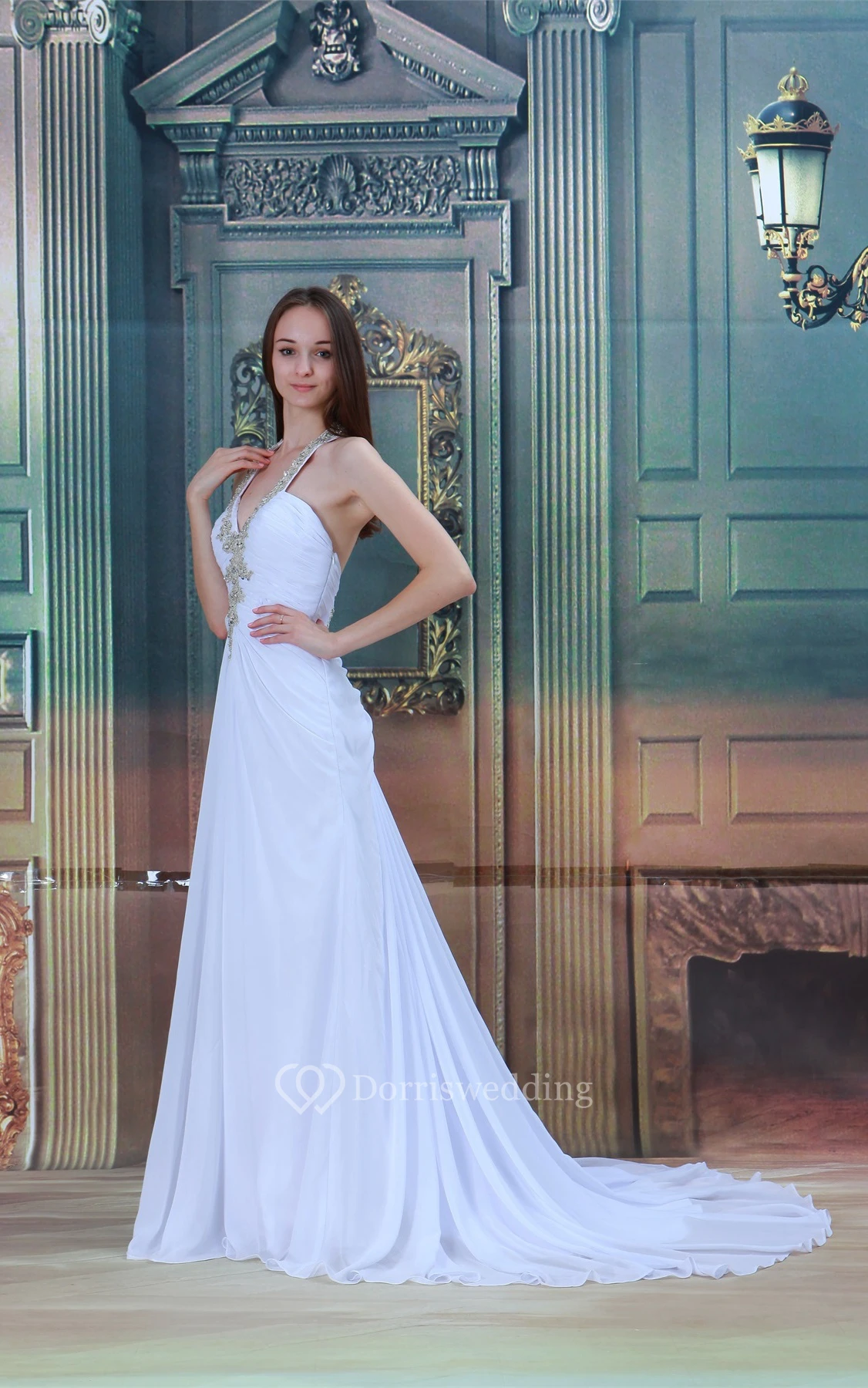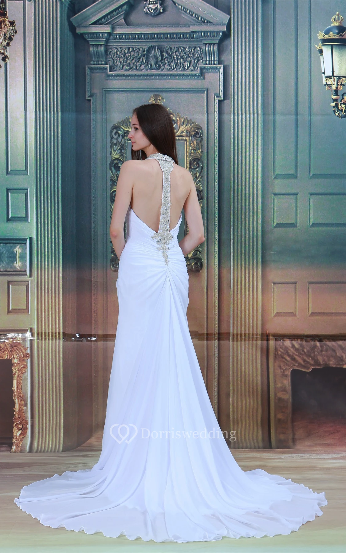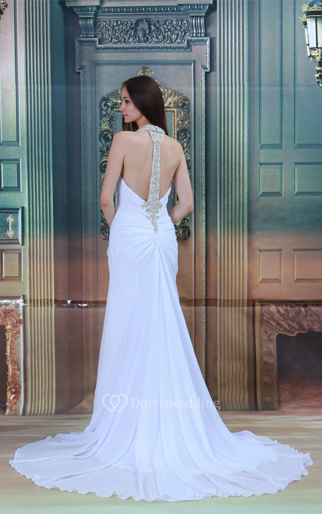 Amazing Halter Sleeveless Chiffon Satin Sheath Wedding Dresses