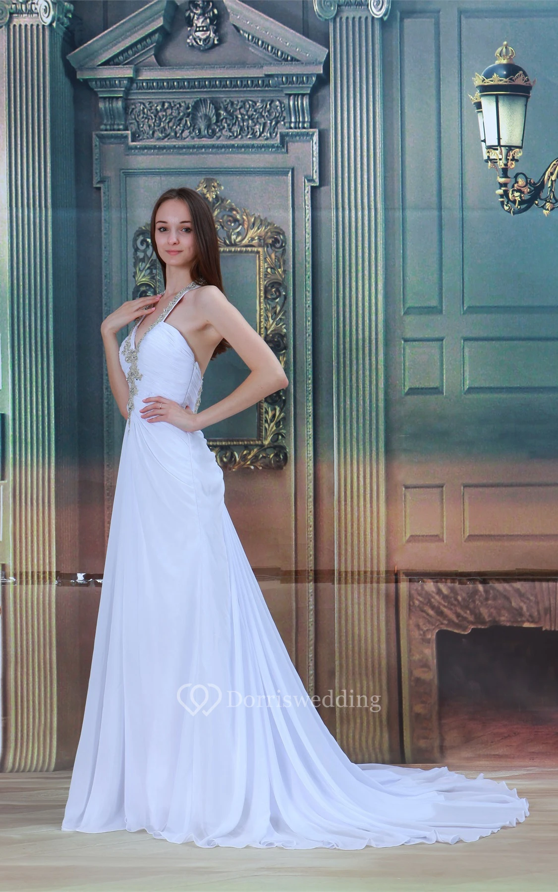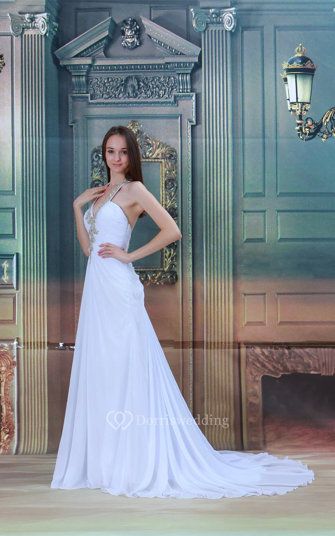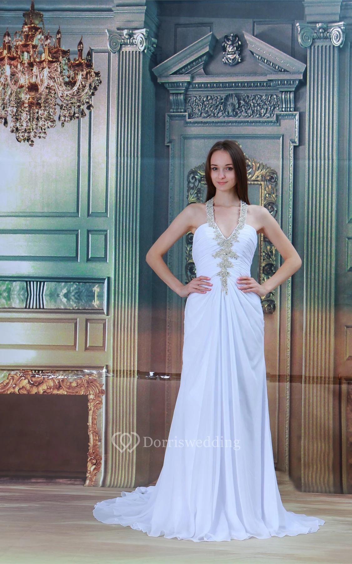 Amazing Halter Sleeveless Chiffon Satin Sheath Wedding Dresses