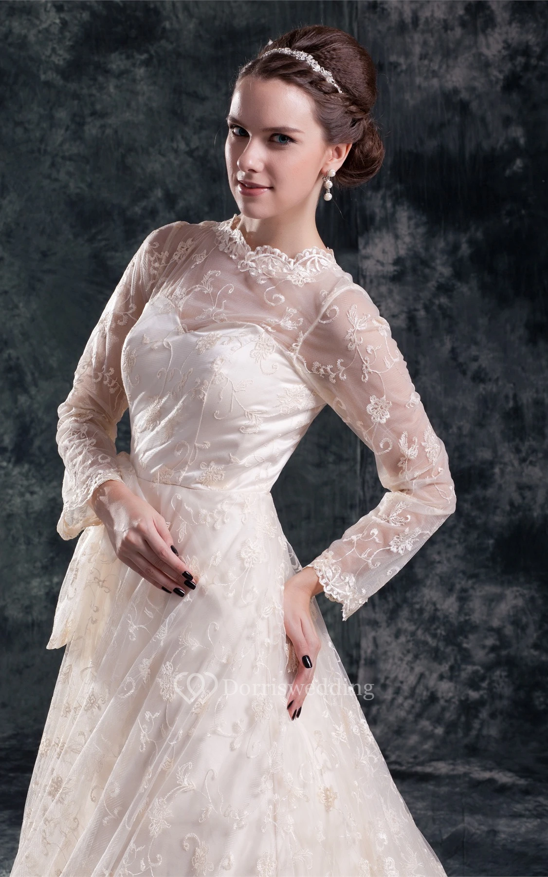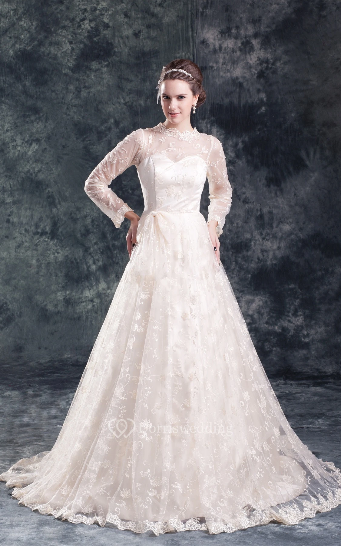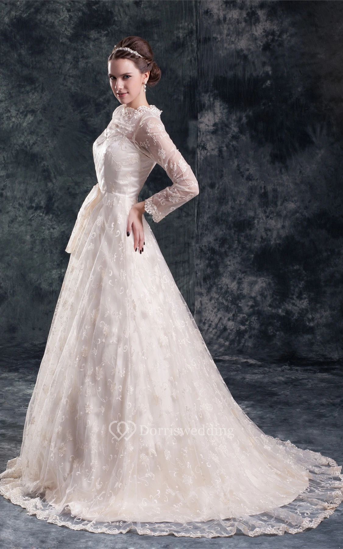Amazing Satin Appliqued Long Sleeve a Line High Neck Wedding Dresses