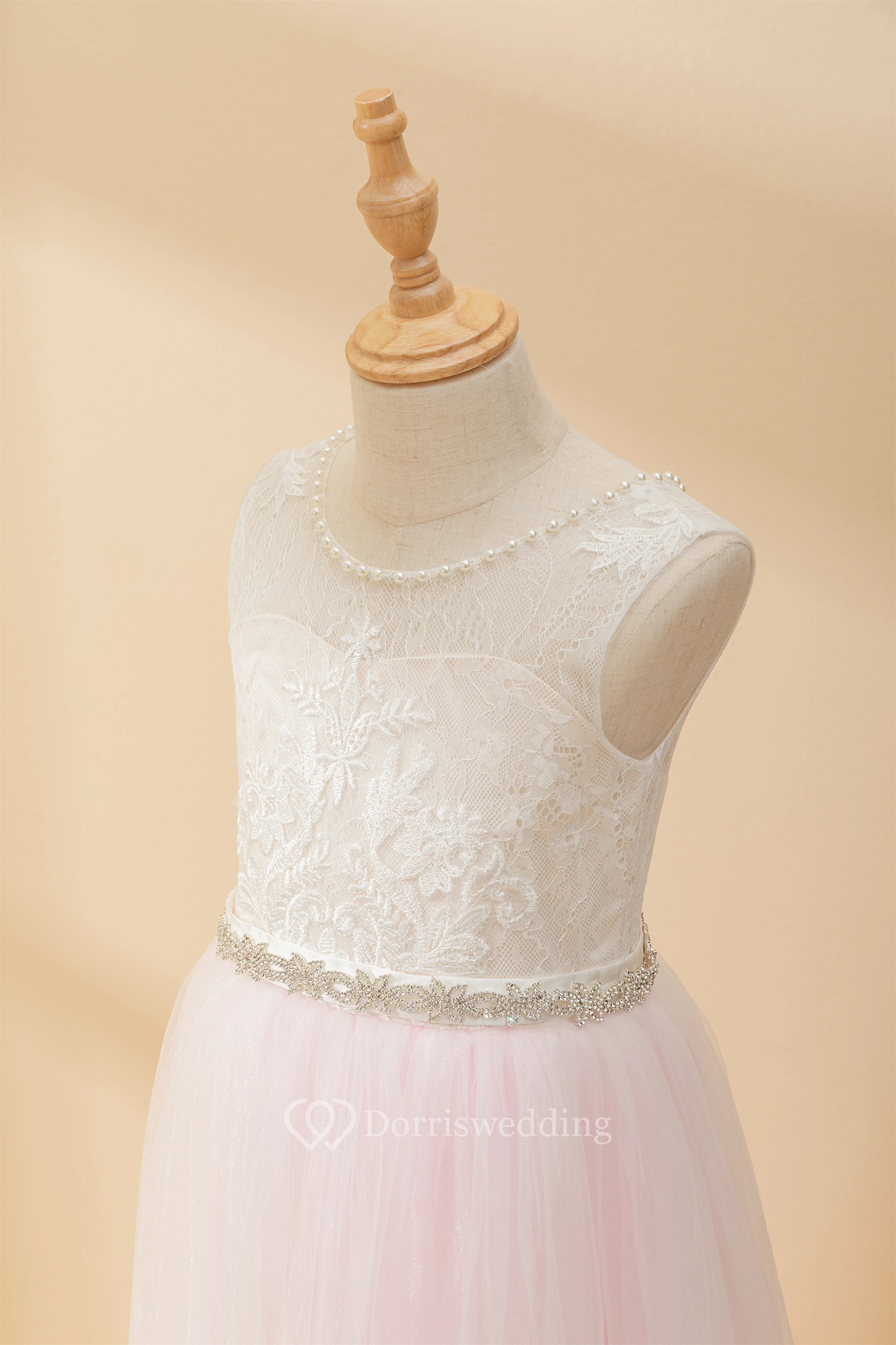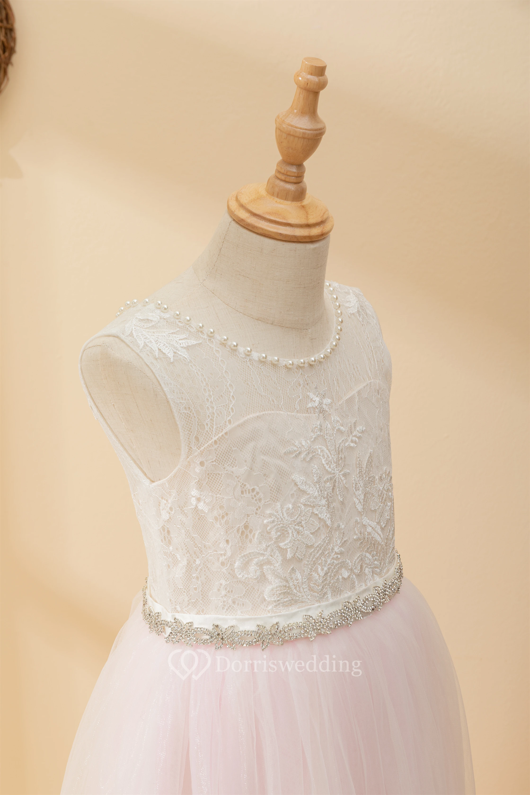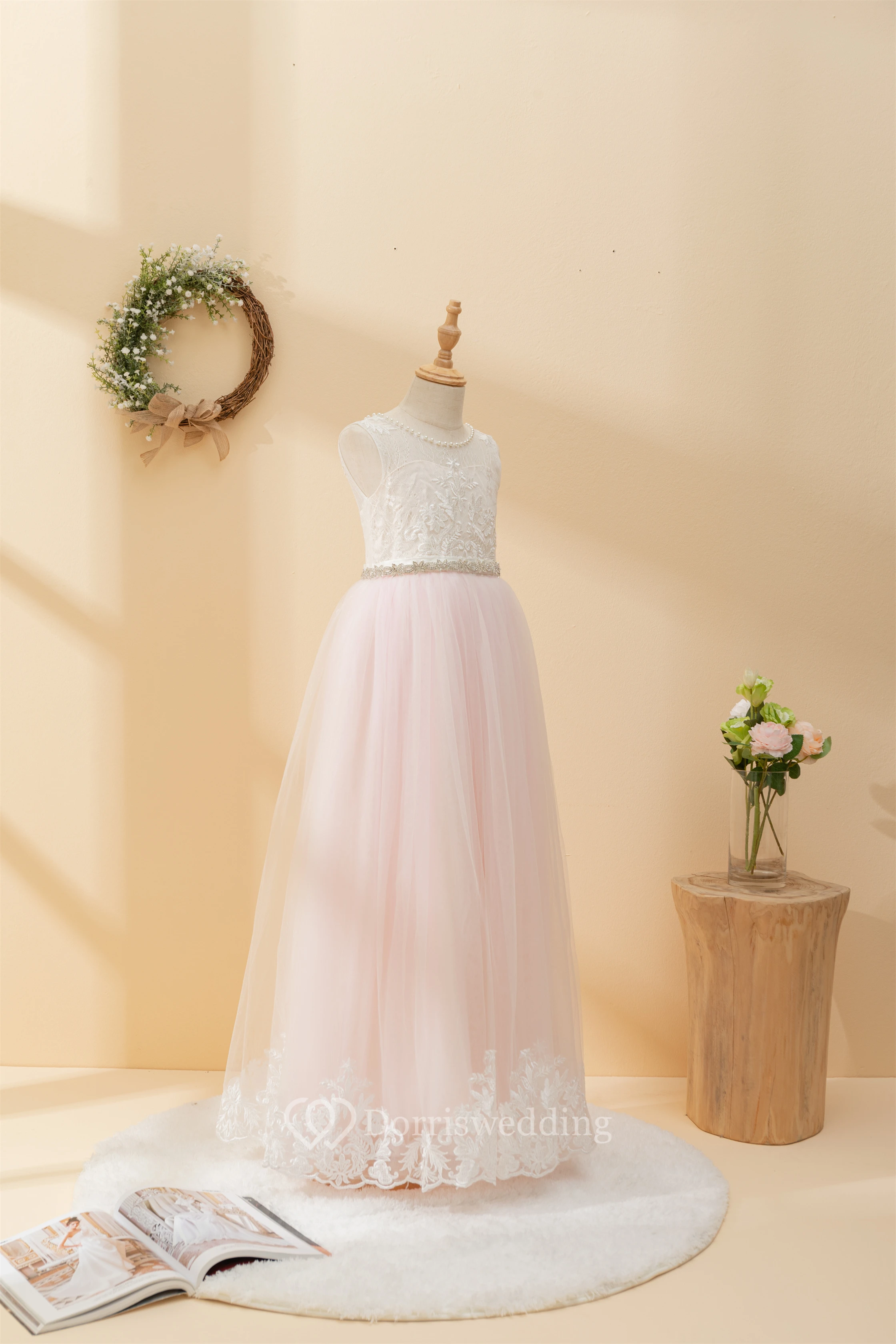 Angel Lace Scoop-neck Sleeveless Tulle Beaded Applique Flowergirl Dress