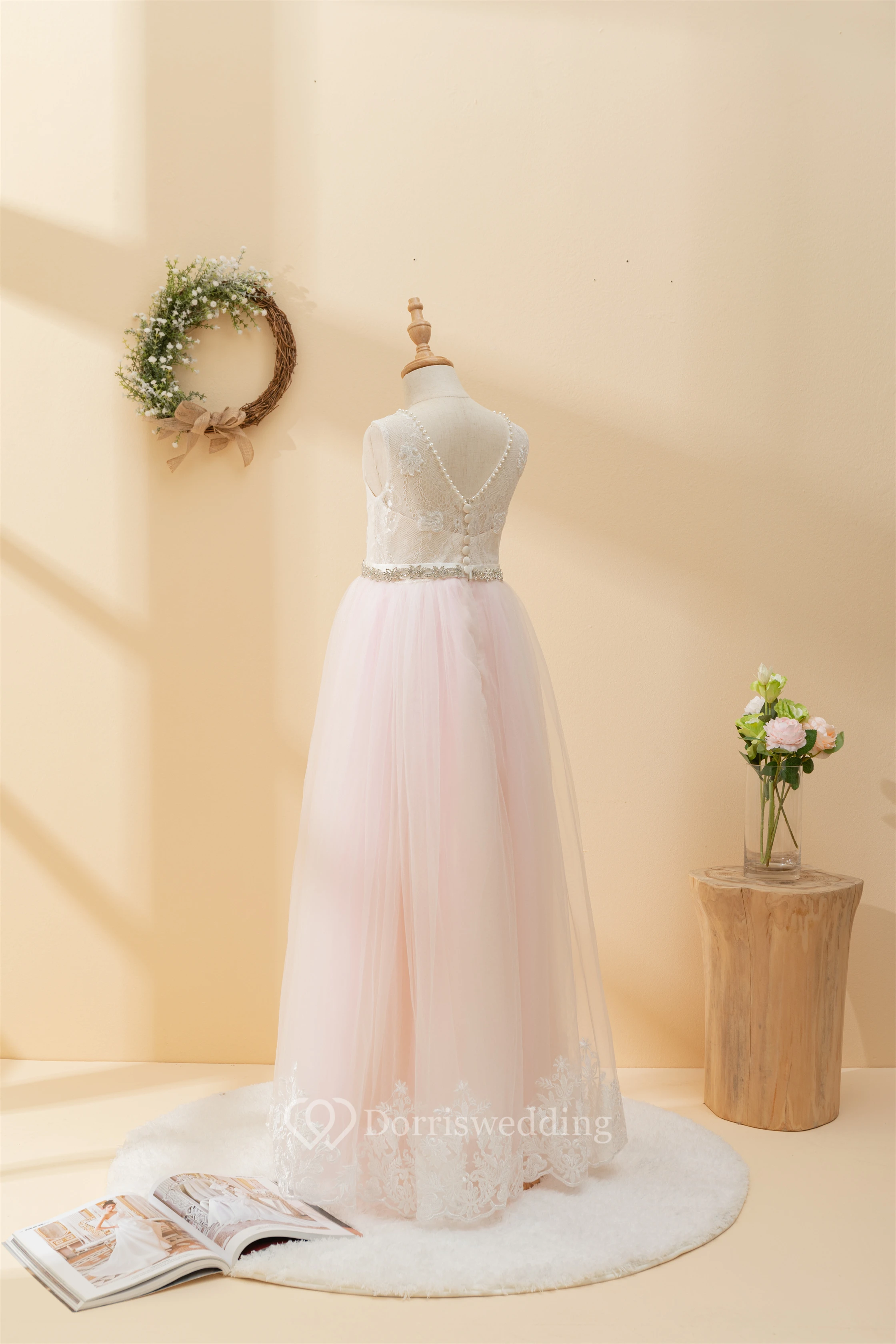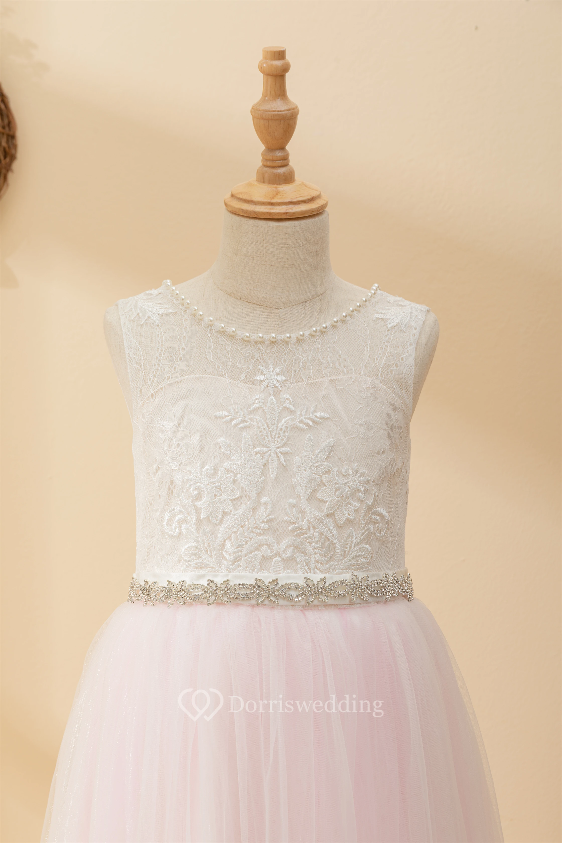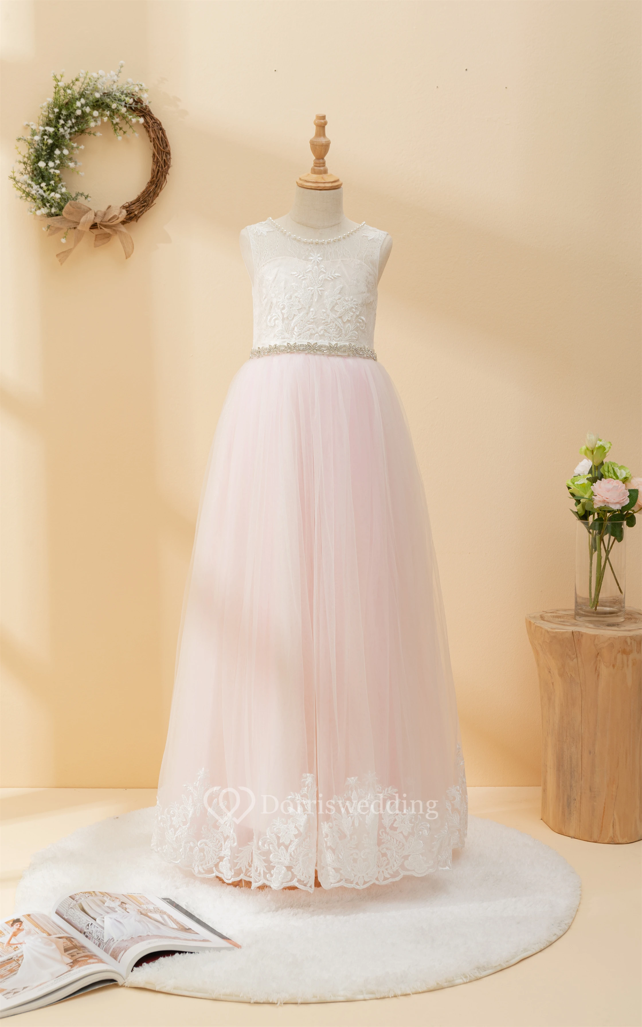 Angel Lace Scoop-neck Sleeveless Tulle Beaded Applique Flowergirl Dress