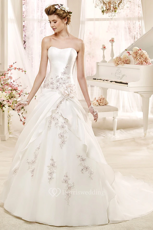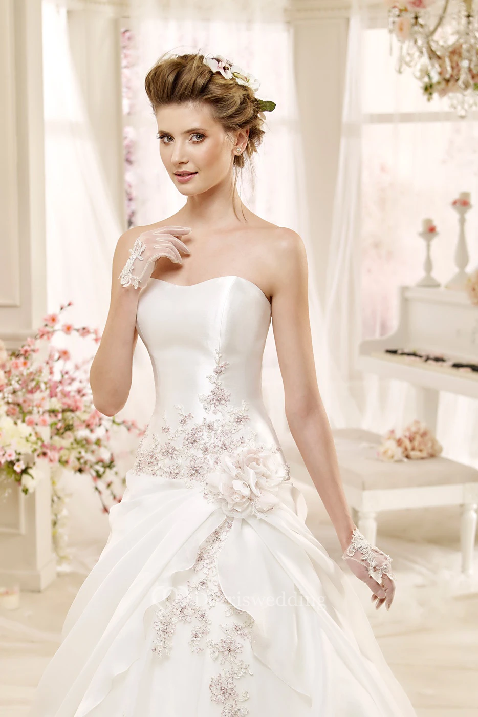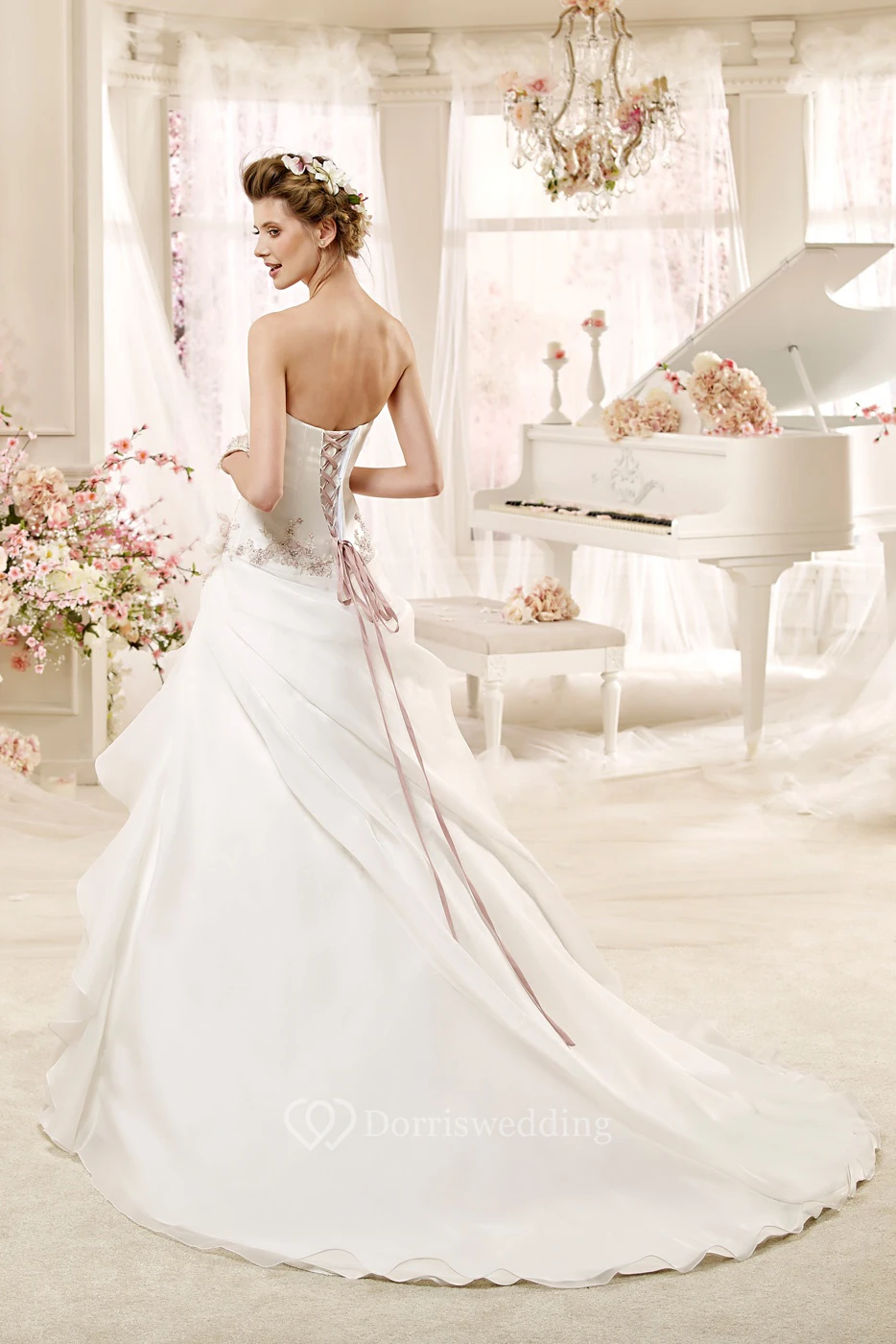 • Embellishments: Flower(s), Draping, Beading