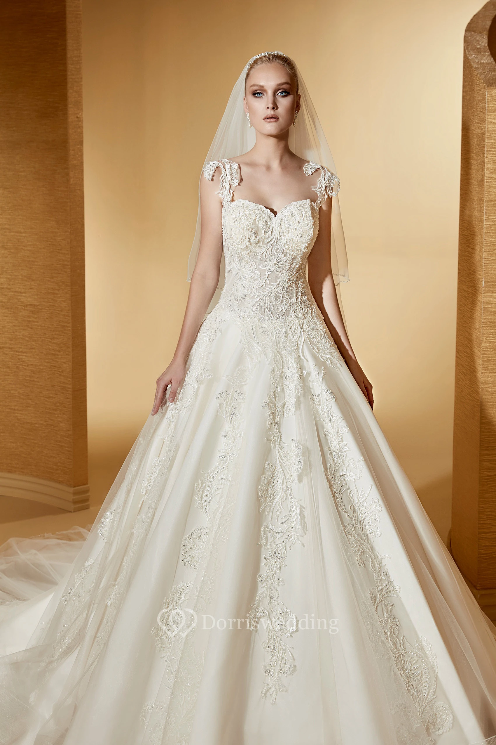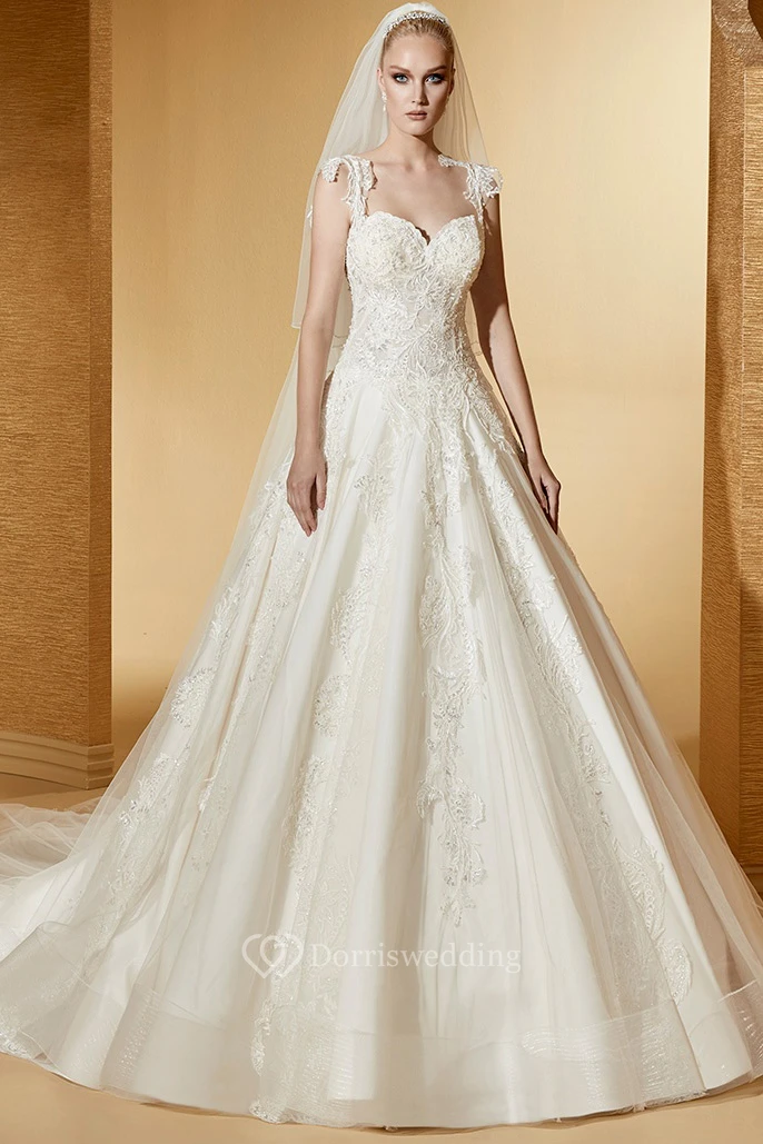 Angel Sweetheart A-Line Appliques Gown With Lace Straps And Brush Train