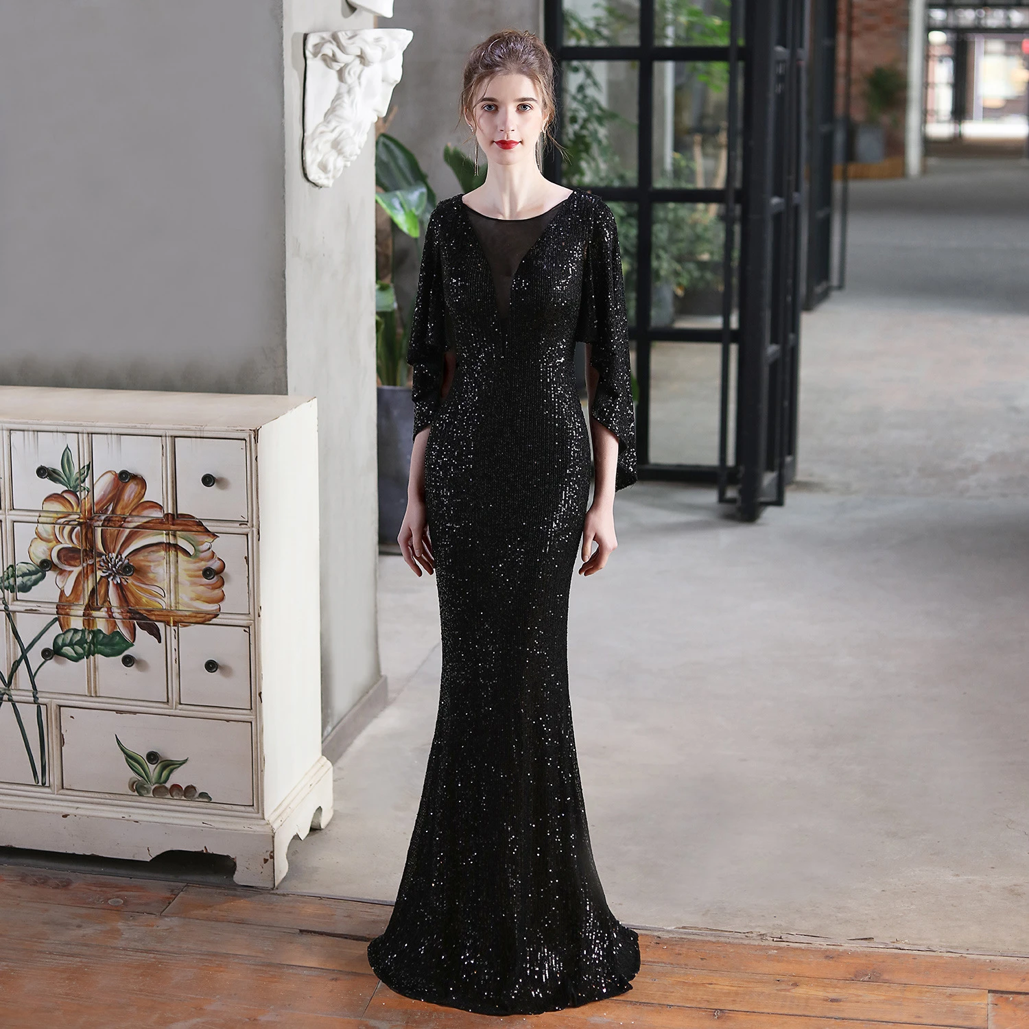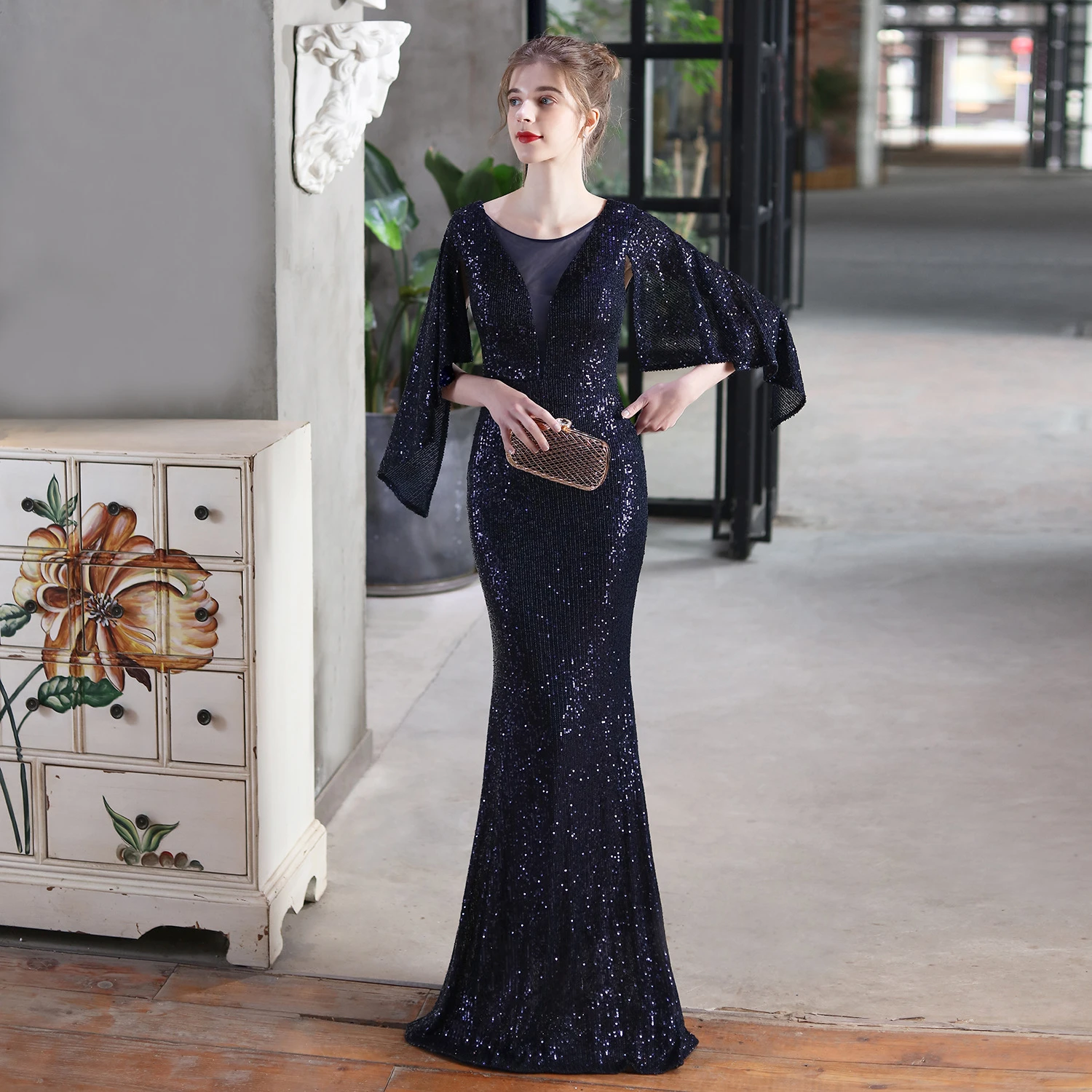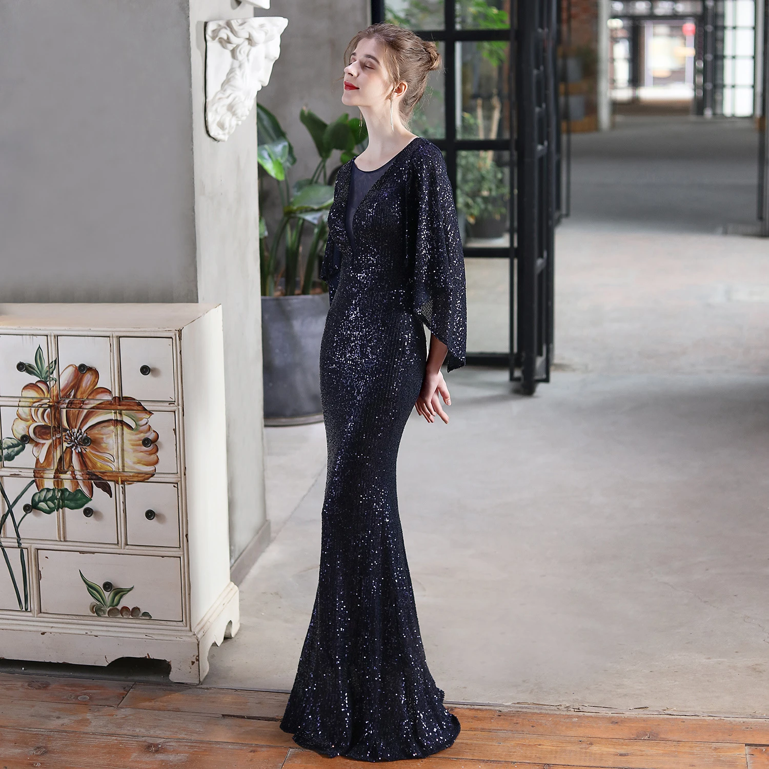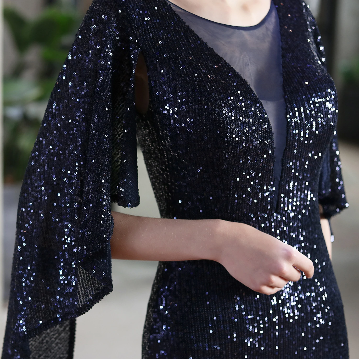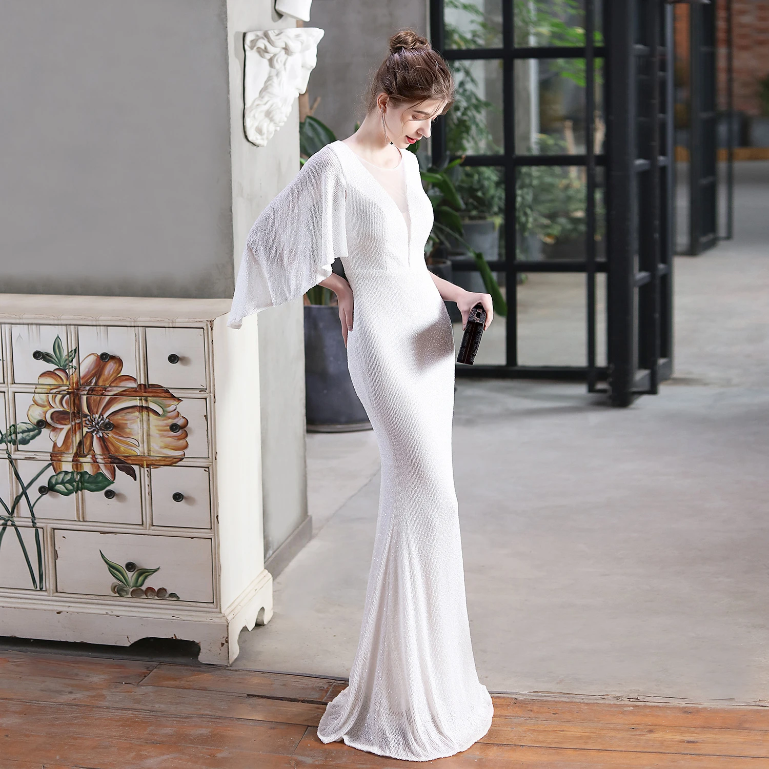 Angel Wings Sequined Fishtail Banquet Elegant Temperament Meeting Host Car Model Evening Dress Summer