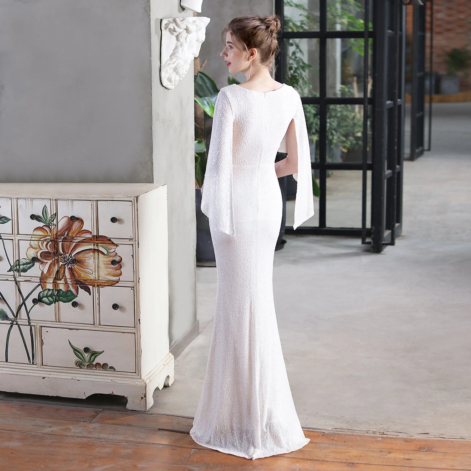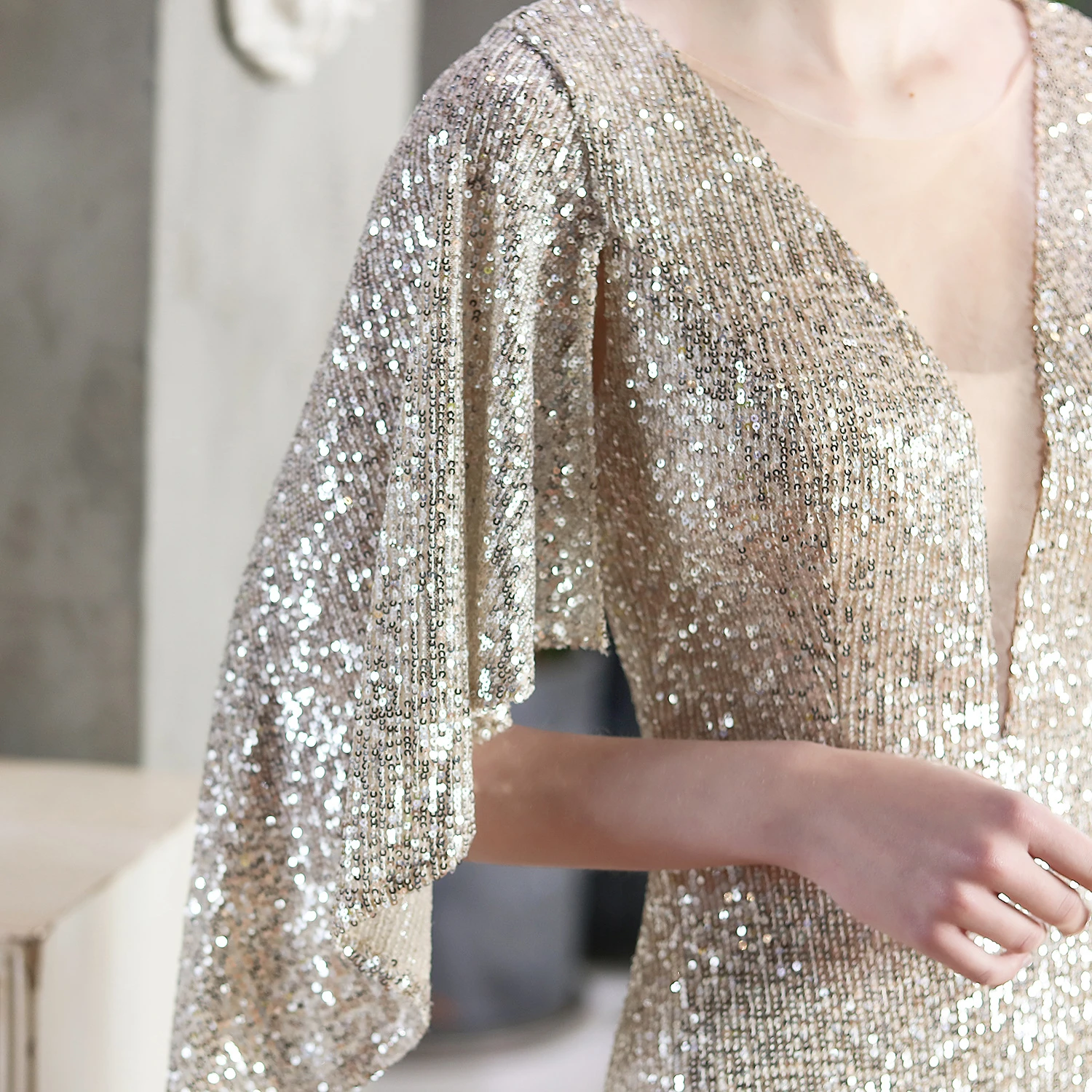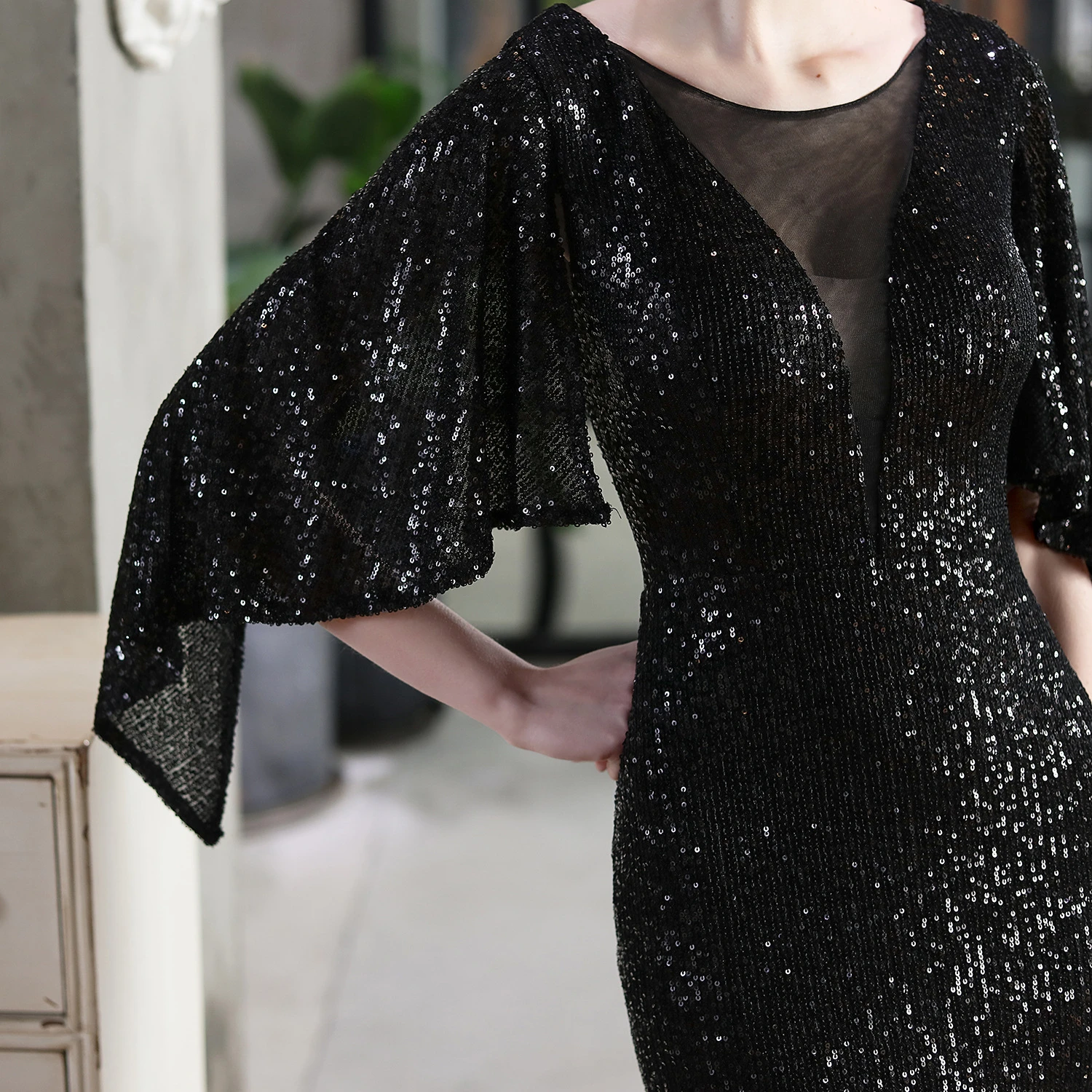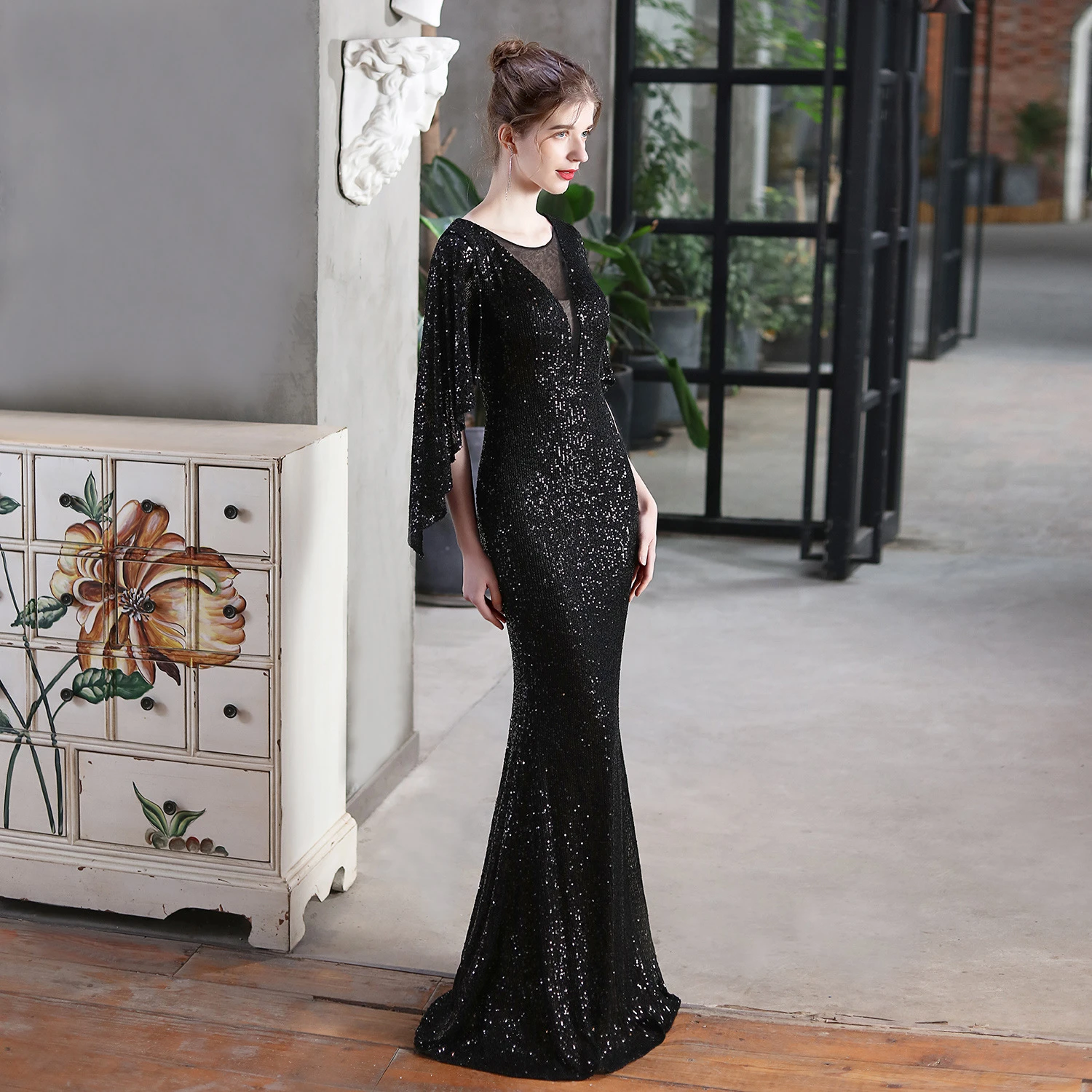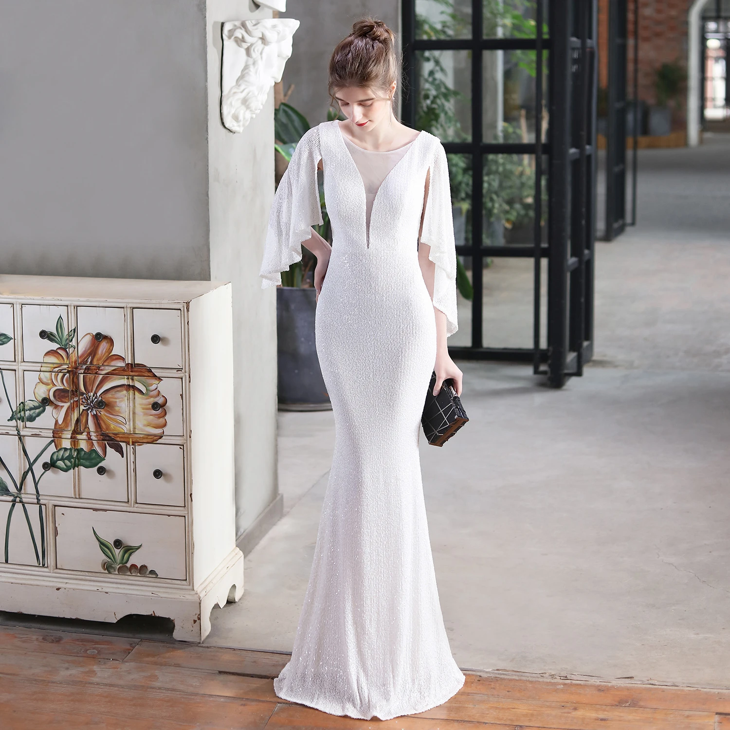 Angel Wings Sequined Fishtail Banquet Elegant Temperament Meeting Host Car Model Evening Dress Summer