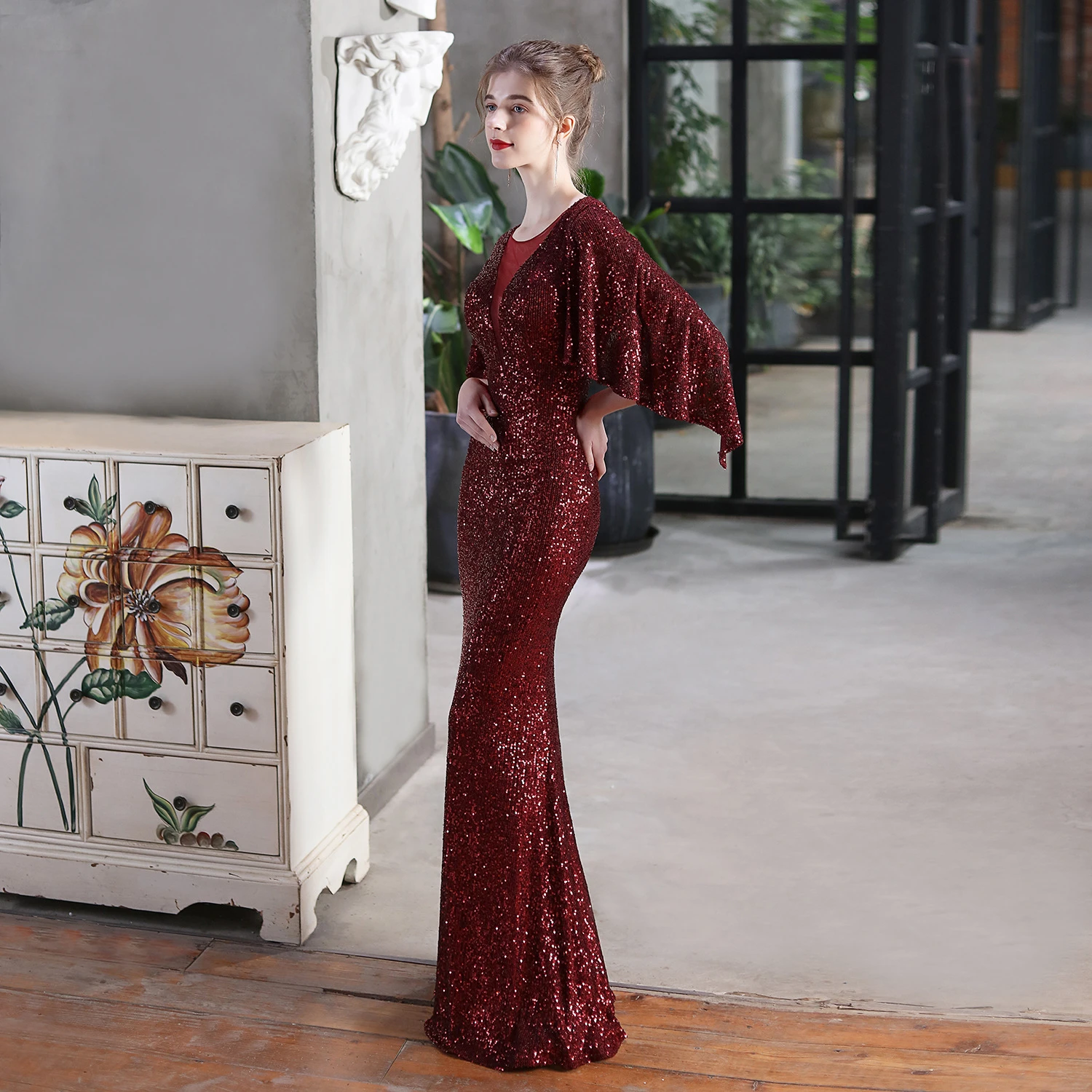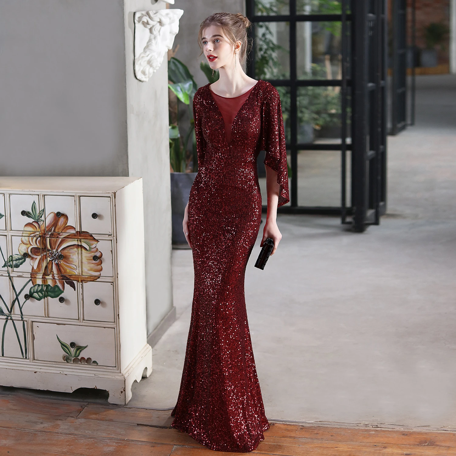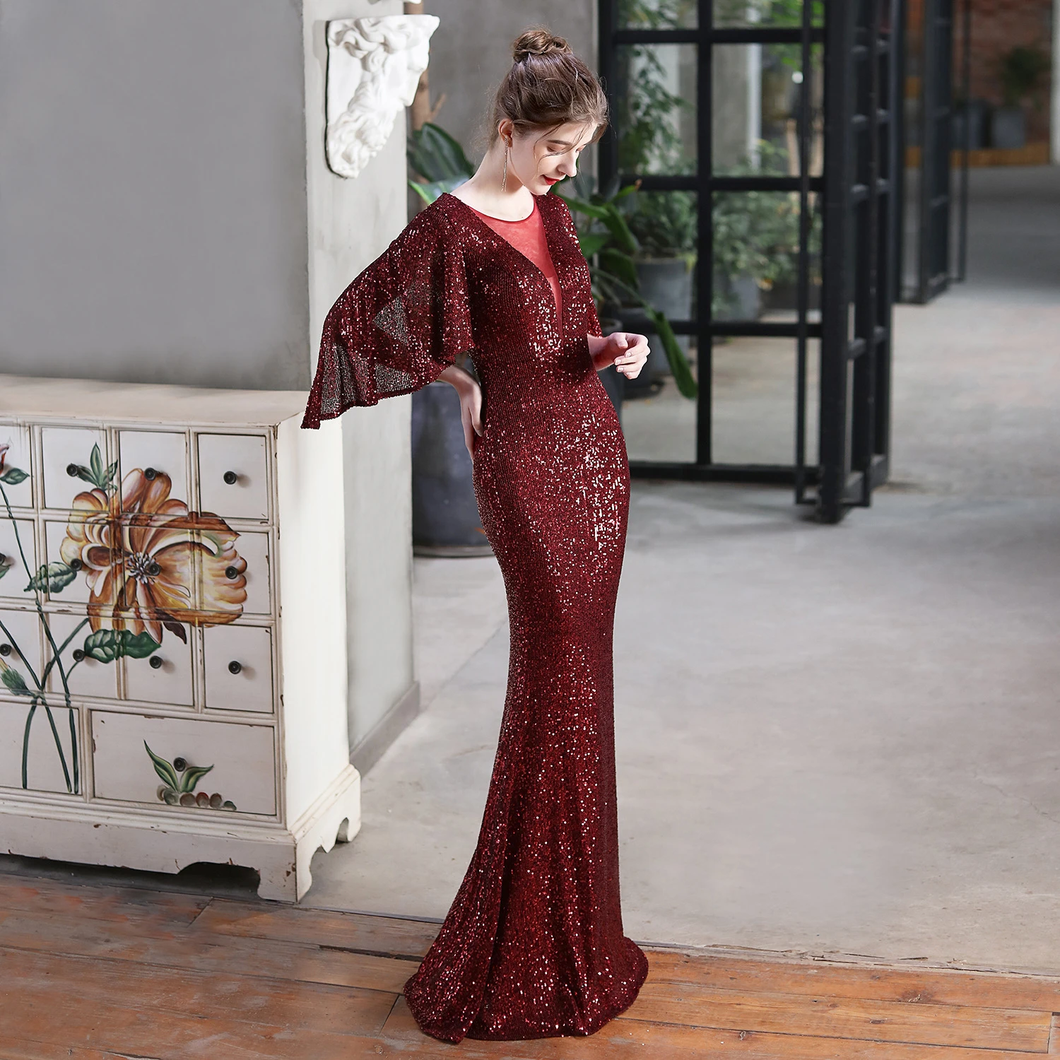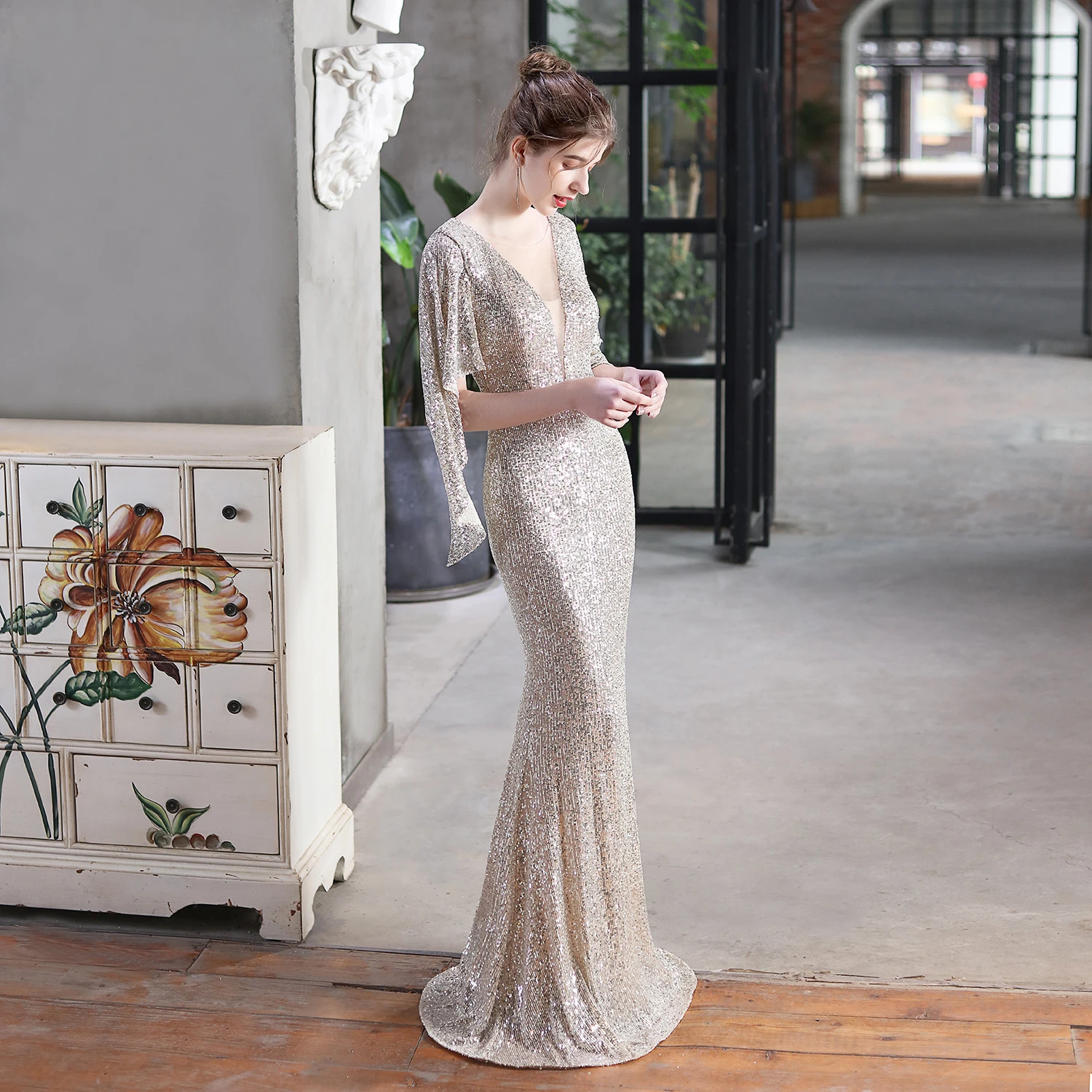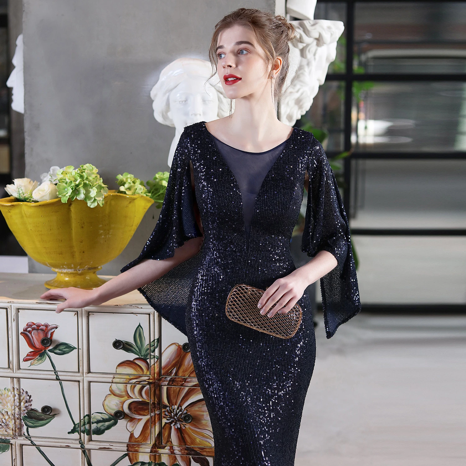 Angel Wings Sequined Fishtail Banquet Elegant Temperament Meeting Host Car Model Evening Dress Summer