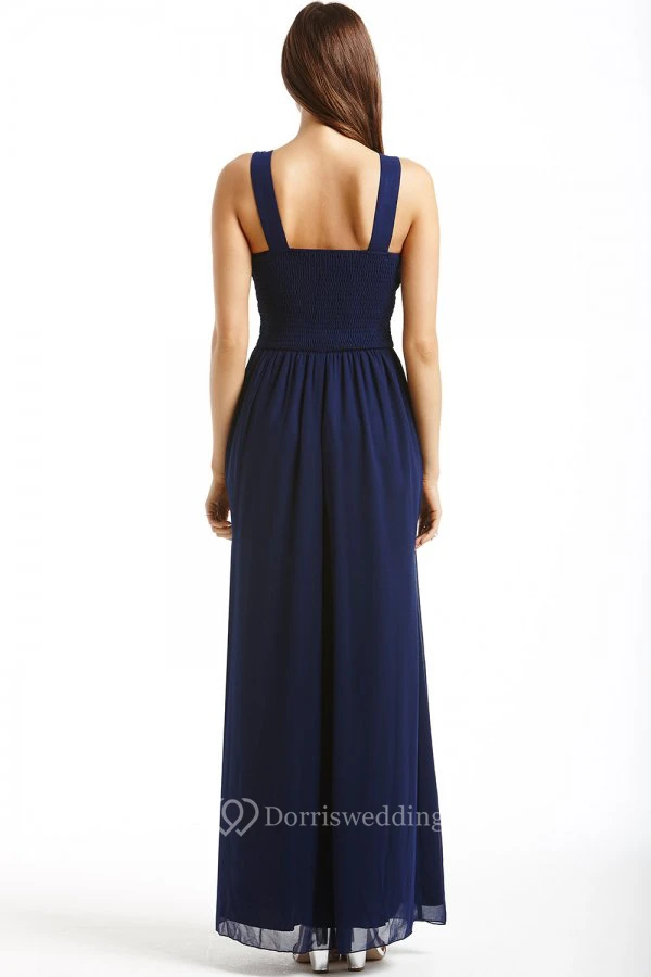 Ankle-Length Bateau Neck Sleeveless Ruched Chiffon Bridesmaid Dress