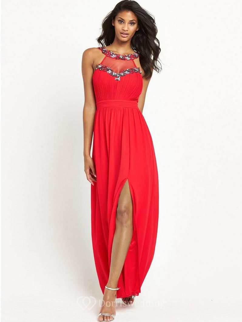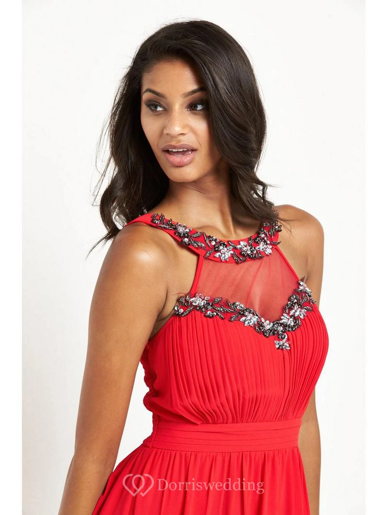 Ankle-Length Beaded Sleeveless Scoop Neck Chiffon Bridesmaid Dress