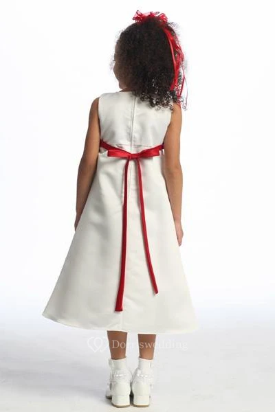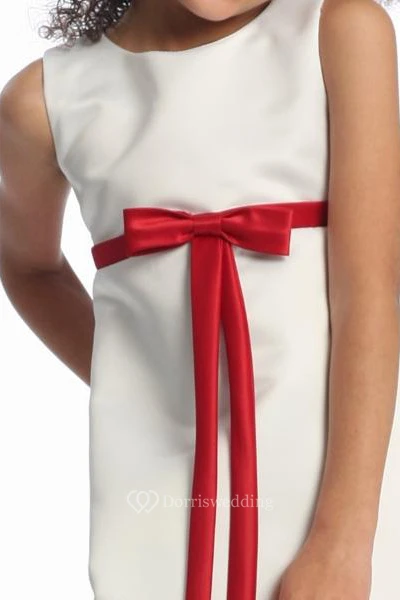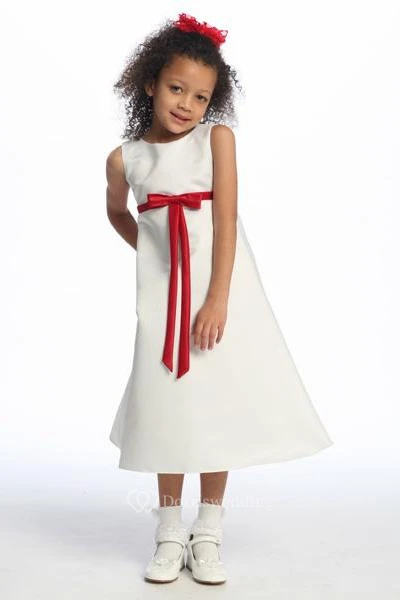 Ankle-Length Bowed Sleeveless Satin Flower Girl Dress
