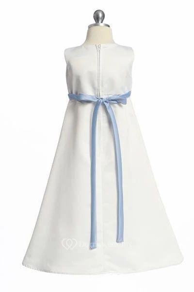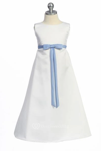 Ankle-Length Bowed Sleeveless Satin Flower Girl Dress