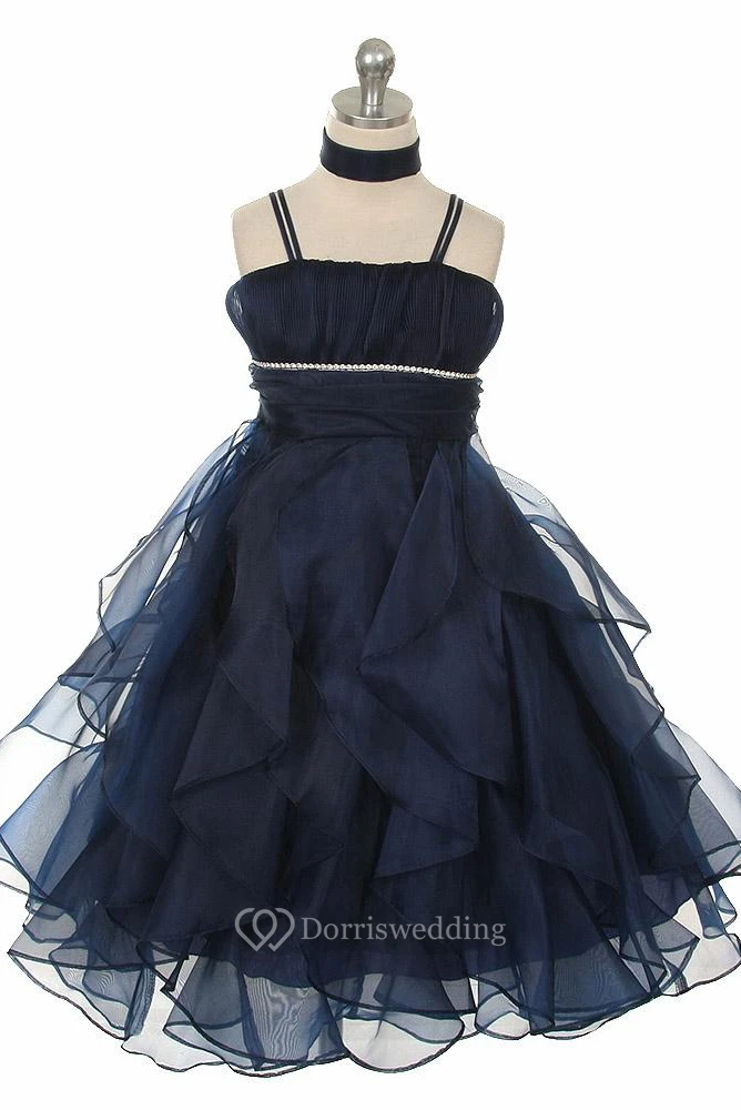 Ankle-Length Cape Empire Pleated Tiered Organza Flower Girl Dress With Sash